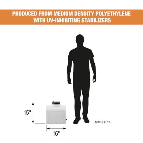 Romotech by Buyers Products Domed Storage Tanks offer a reliable and portable solution for storing non-flammable liquids including potable water, agricultural chemicals, and industrial fluids. These tanks are ideal for farming, landscaping, off-grid living, and camping, providing flexible liquid storage wherever it's needed. Constructed from high-quality, medium-density polyethylene, the tanks feature UV-inhibiting stabilizers that allow for extended outdoor use without fading or degradation. The rustproof material is easy to clean and built to withstand harsh field conditions, with a maximum contact operating temperature of 110°F. A wide fill cap allows for fast filling, while the integrated drain and bulkhead fitting make emptying and siphoning quick and efficient. Molded-in gallon and liter markings let you easily monitor liquid levels at a glance. Domed tanks also feature tie-down channels to secure the unit using saddle straps during transport or stationary use. Commonly used in agriculture, industry, and emergency preparedness, these tanks deliver dependable performance in demanding applications