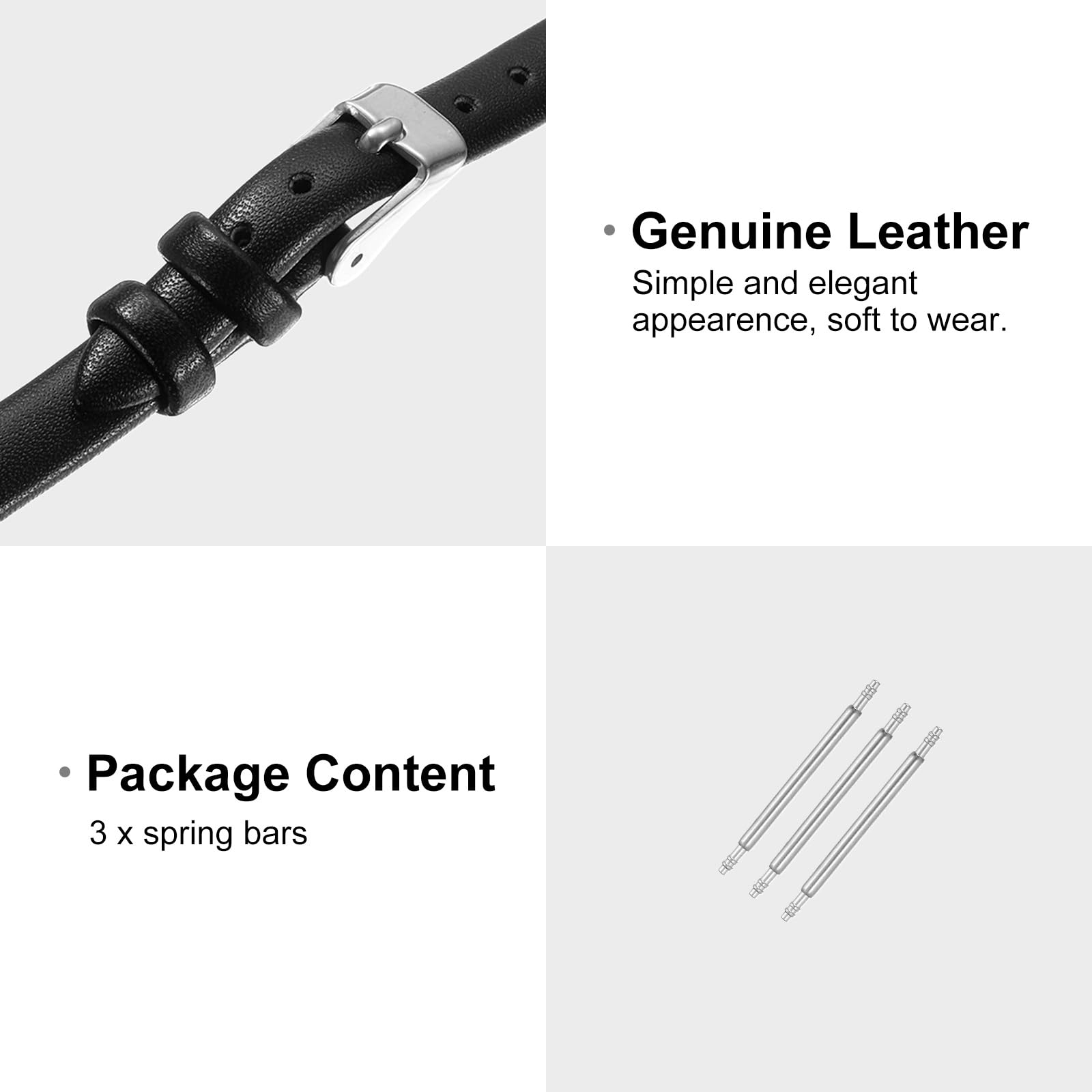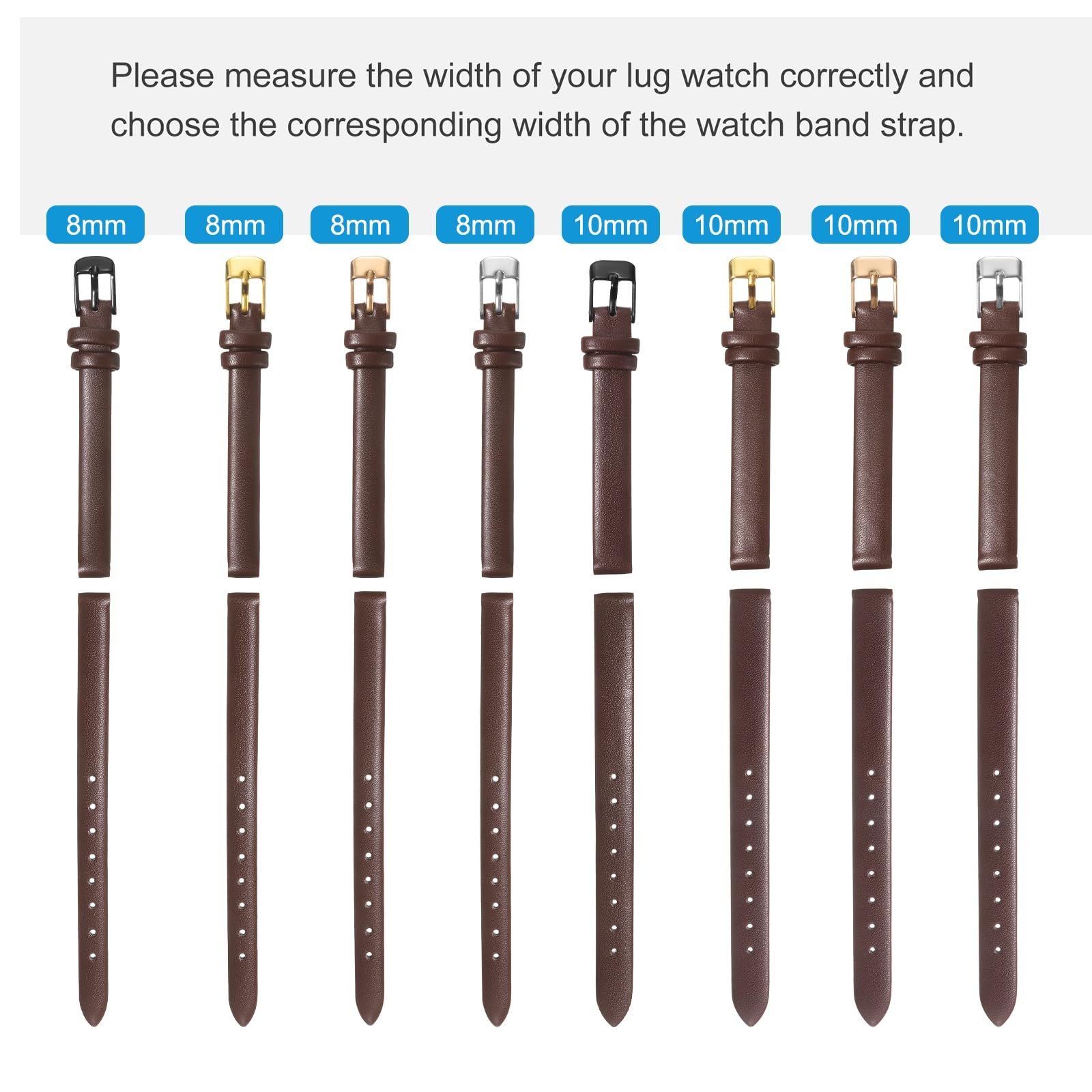 Description Material - The flat cowhide watch strap provides a more comfortable wearing experience. breathable, sweat-proof, and soft to wear. Feature - Universal size soft comfortable leather strap, smooth touch, simple and elegant, color your life. Application - The strap is suitable for men and women, the unique design fits most watches, give your watches a fresh new look. The watch straps are available in a variety of colors and sizes, you can choose the one that matches your fashion tastes. Notice - Please confirm the size before ordering, make sure the strap you choose matches the lug width of the watch case.