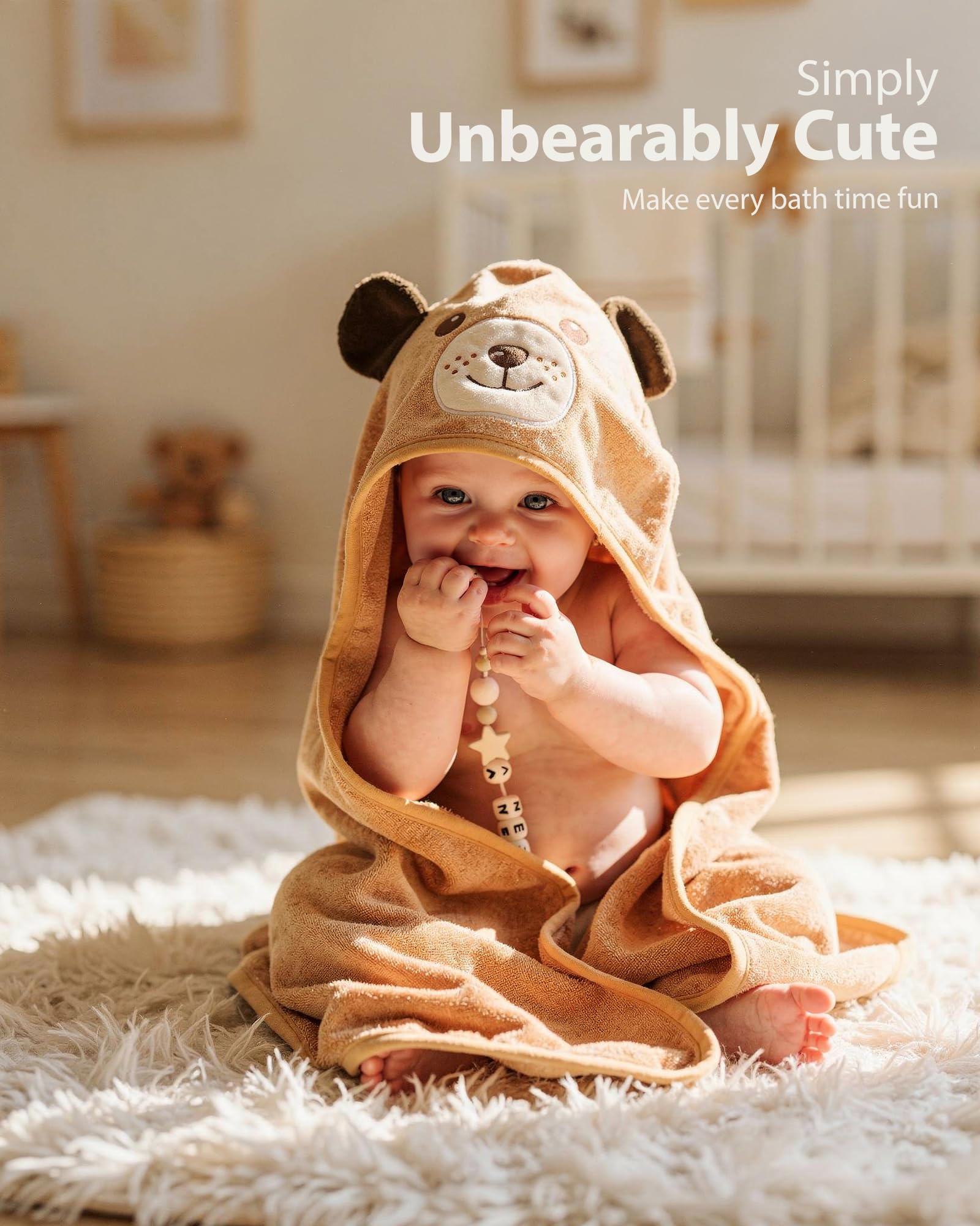 Large Hooded Towels for Baby - Measuring 32x32", these hooded baby bath towels fit newborns, infants, toddlers, and kids up to age 4. A hooded baby towel made to last through every stage.