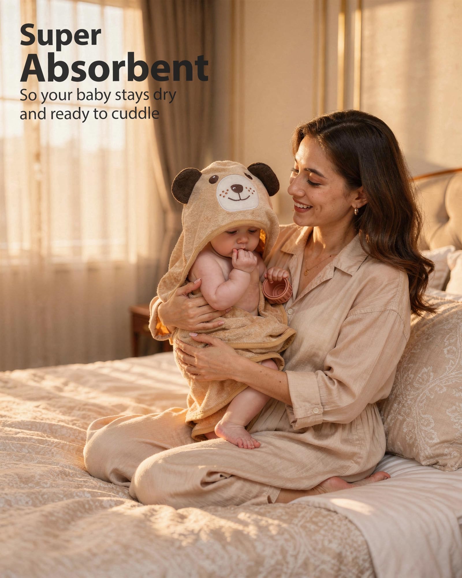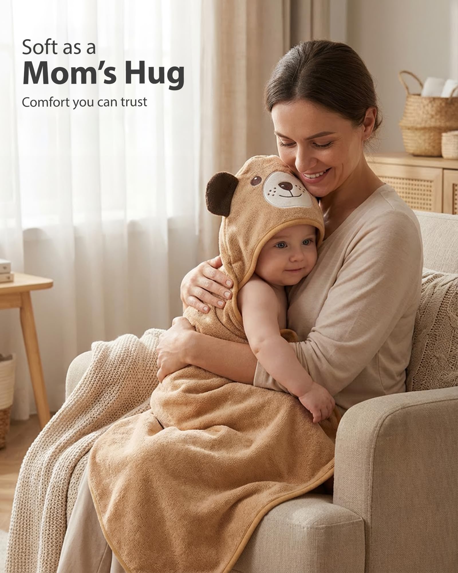 Soft and Safe for Delicate Skin – Our baby hooded towel blends super-soft viscose made from bamboo and cotton for plush comfort. Naturally hypoallergenic, ideal for baby towels with hood and toddler towels.