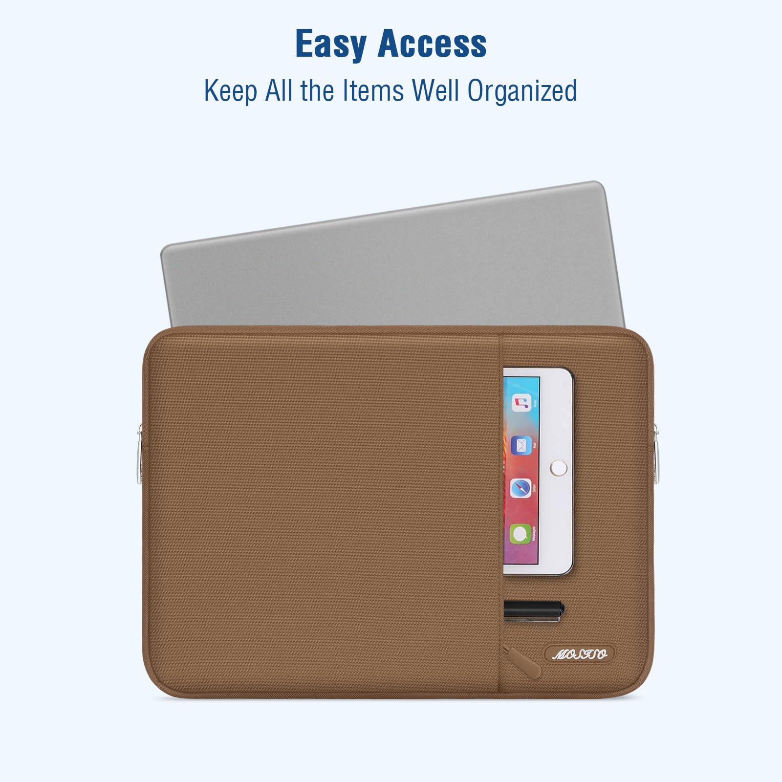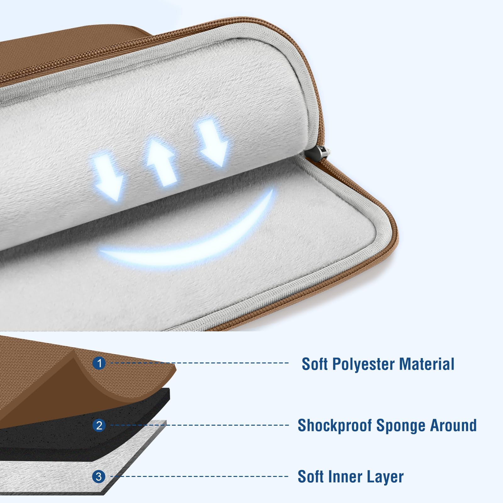 Made with polyester material, a top opening zipper gliding smoothly and allows convenient access to your device. Slim and lightweight, does not bulk your device up and can easily slide into your briefcase, backpack or other bag.