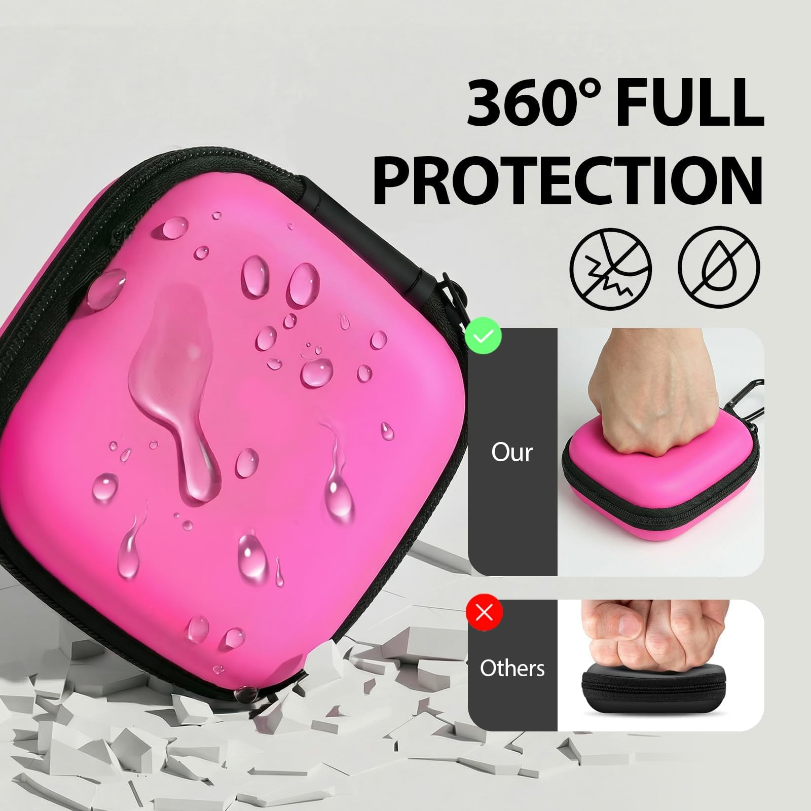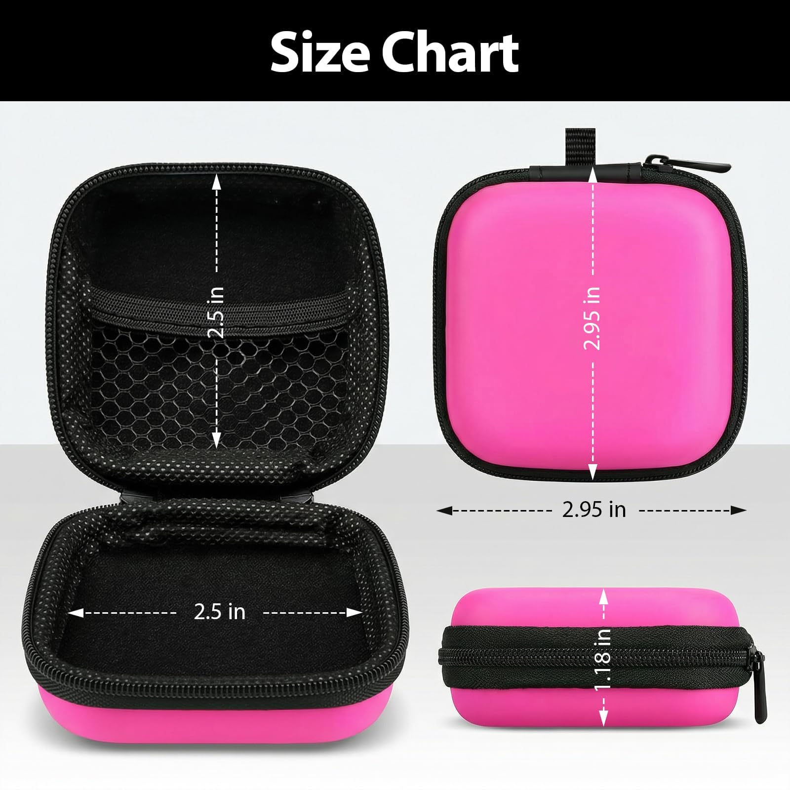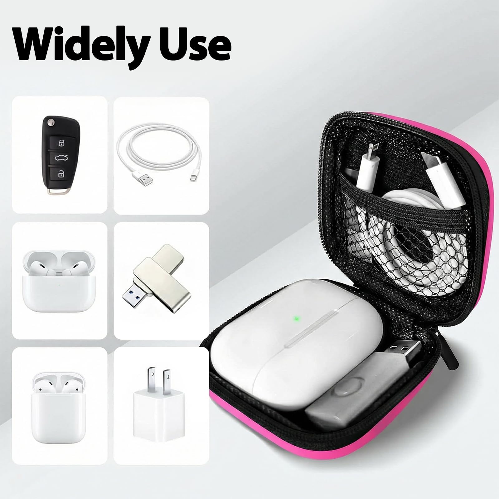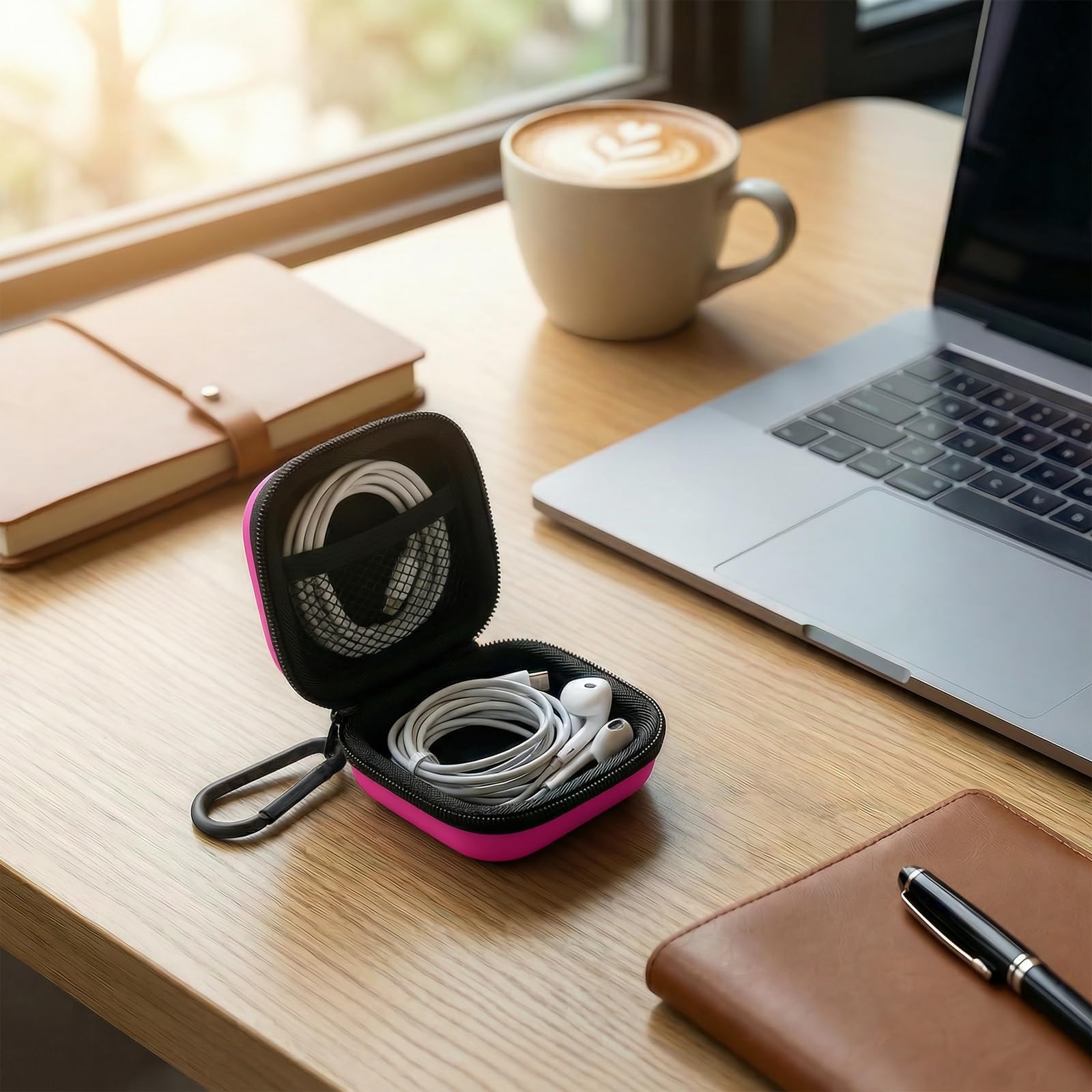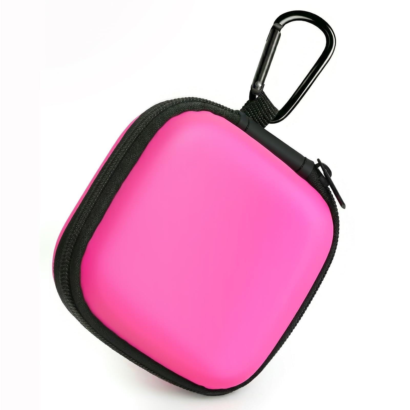 Keep your small electronic essentials organized and protected with our compact carrying case. Measuring just 3x3x1.2 inches, this lightweight pouch easily fits into your pocket or luggage, making it perfect for travel or daily commutes. It features a smooth, secure zipper closure and a dust-proof soft lining that protects your wireless earbuds (compatible with AirPods) from daily scratches and bumps. Inside, a handy mesh pocket keeps charging cables, USB flash drives, and SD cards neatly separated and completely tangle-free. For ultimate on-the-go convenience, simply use the included sturdy metal carabiner to clip the case to your backpack, handbag, or belt loop. (Package includes 1 case and 1 carabiner; earphones not included)