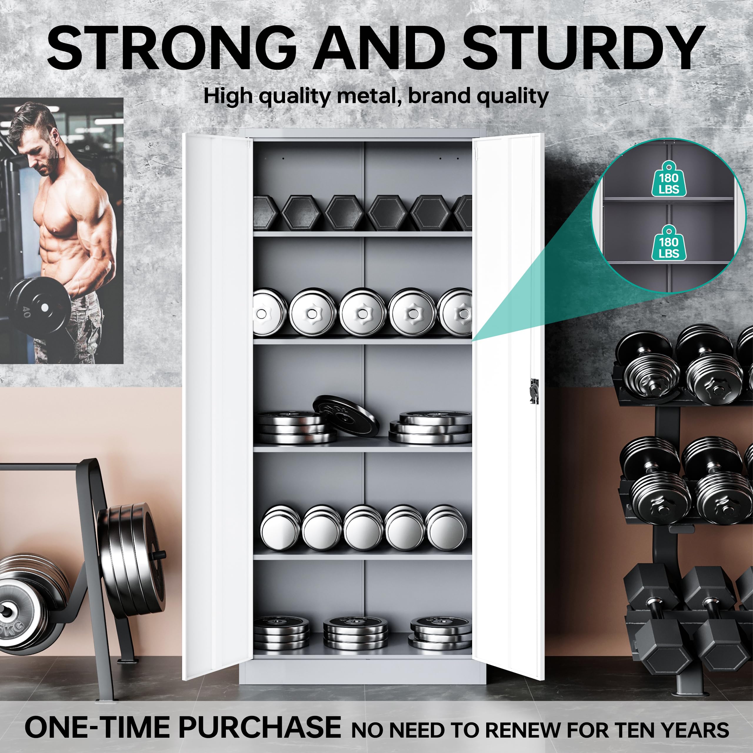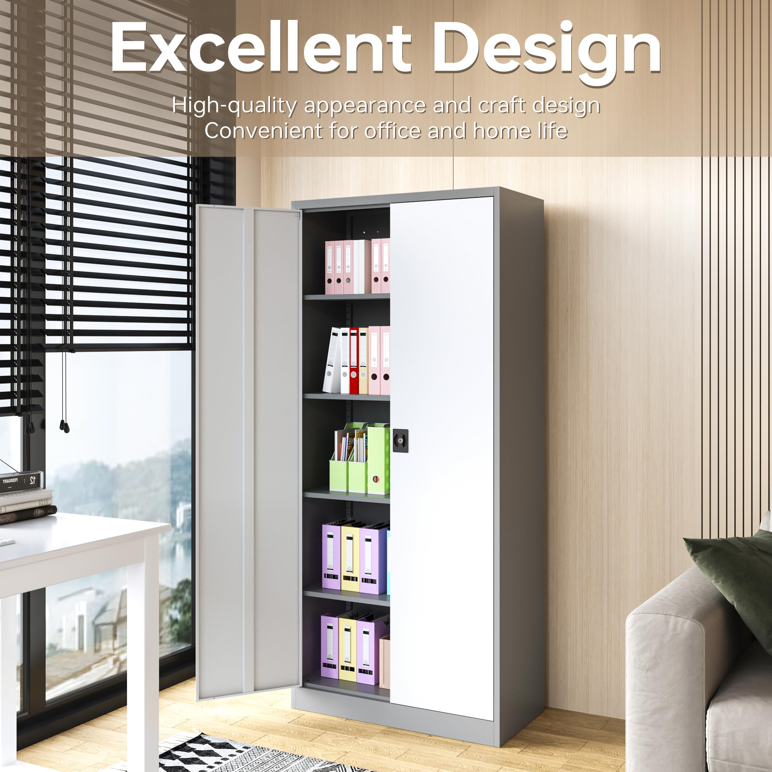 【Lockable Storage Cabinets】Our metal storage cabinet come with locks and 4 adjustable shelf for a great fit and convenience. high end unlocks to protect valuables including keys. Whatever your storage needs, you can create a unique storage space that suits them