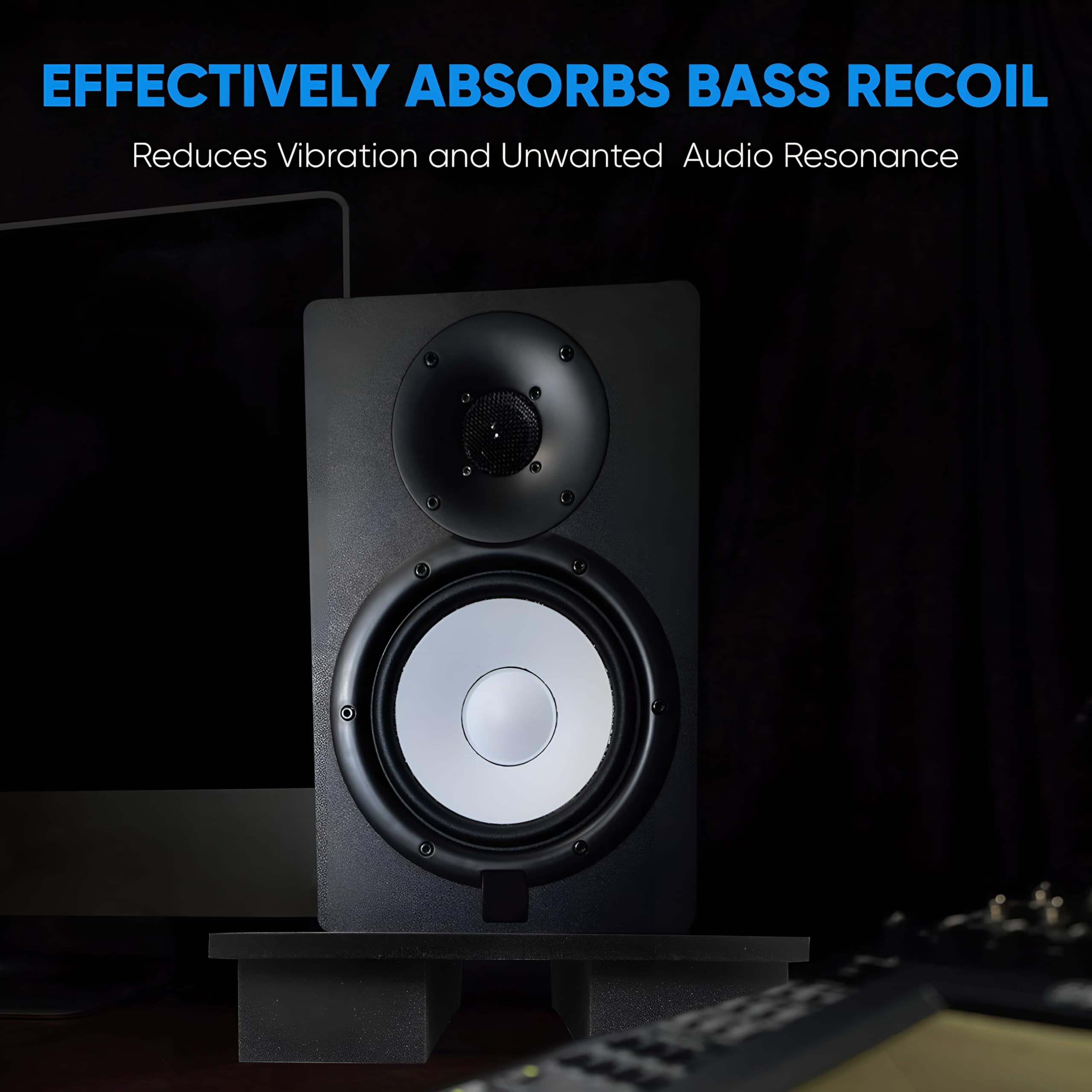 UNIVERSAL COMPATIBILITY: Includes 1 sound dampening riser platform pad that is universally compatible and works with virtually all speaker types, brands and models. It works perfectly w/ studio monitor, subwoofer, loudspeakers and shelf speakers