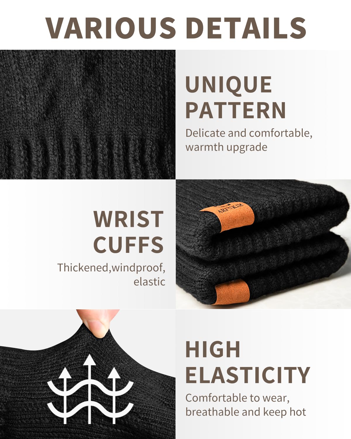 EXQUISITE WORKMANSHIP & UNIQUE TEXTURED: Thickened elastic cuffs make it easier and more comfortable to wear, it locks in the warmth better. The warm gloves adopt a stylish and classic pattern design, which is clearer knitted than others, and it perfectly decorates your hands well.