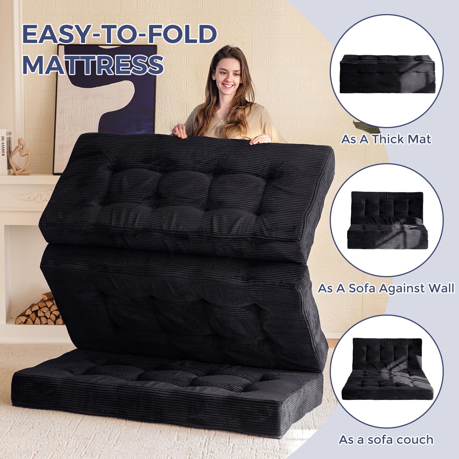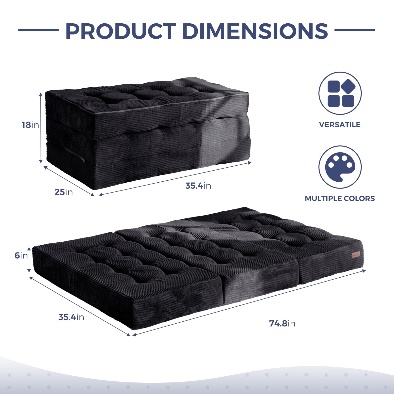 Tufted Craft Design: The topper of the foldable triple-fold mattress, made of ultra-soft and breathable corduroy fabric on the top, can keep you feeling fresh. The tufted crafting design adds a personalized style to the foldable mattress and also brings fun to your life