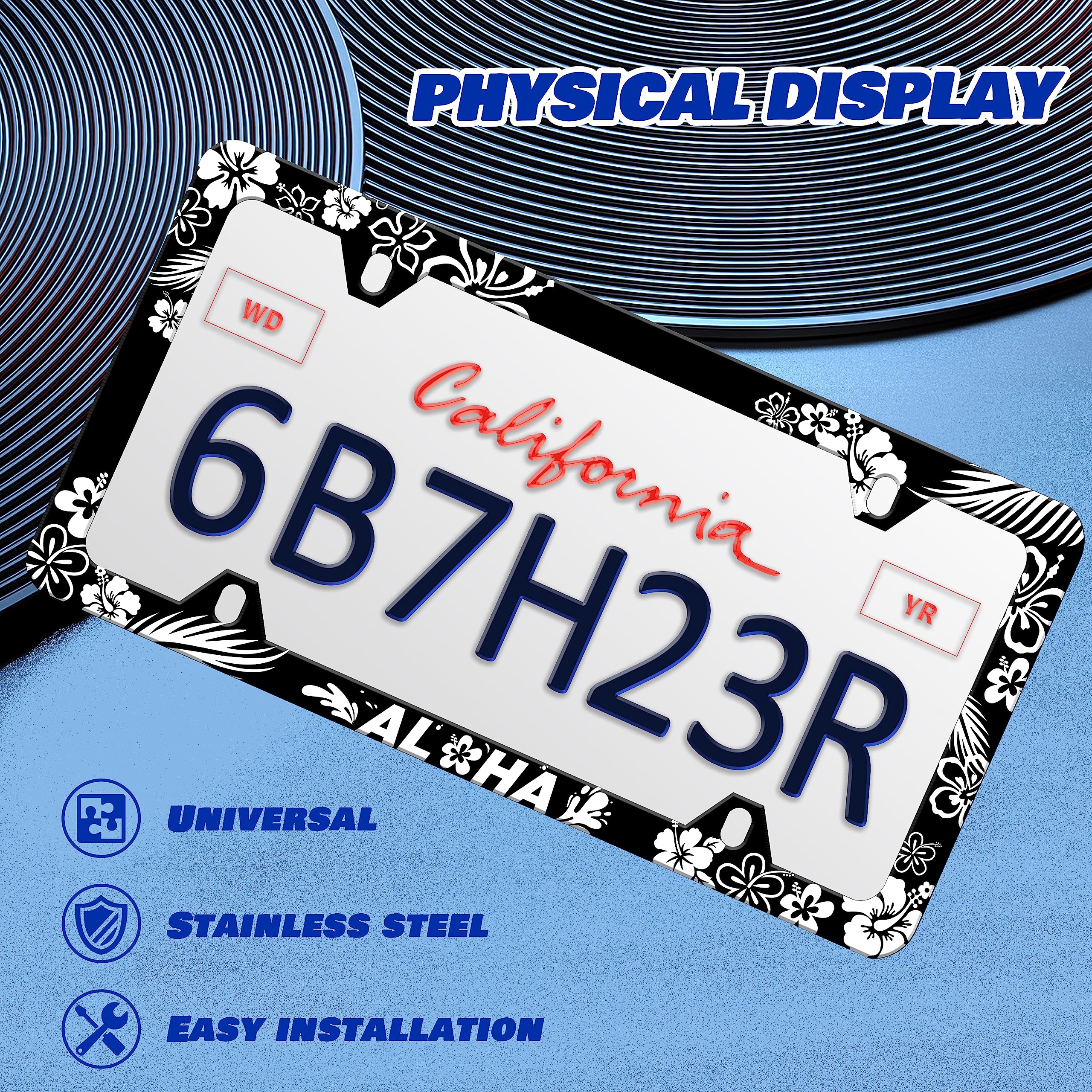 The size of the license plate frame is: 12 x 6 inches, it fits all standard size US vehicle license plates.With compatibility, the stylish design frame fits perfectly on your car license plate.