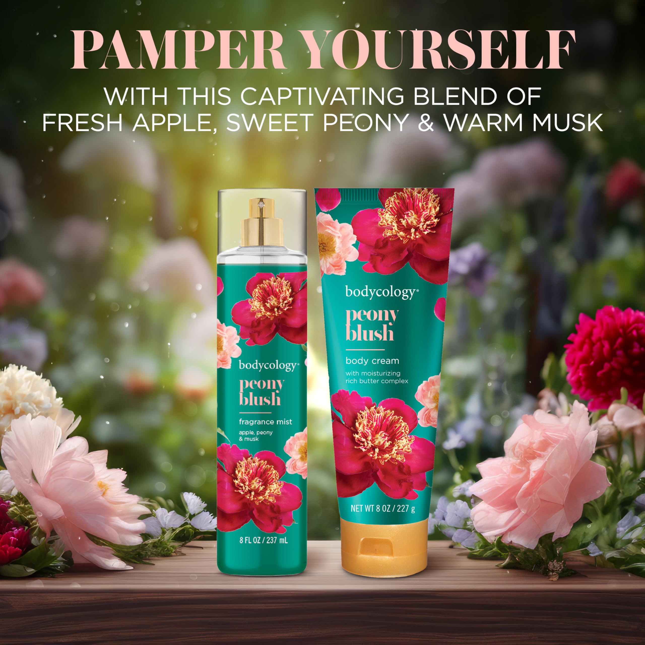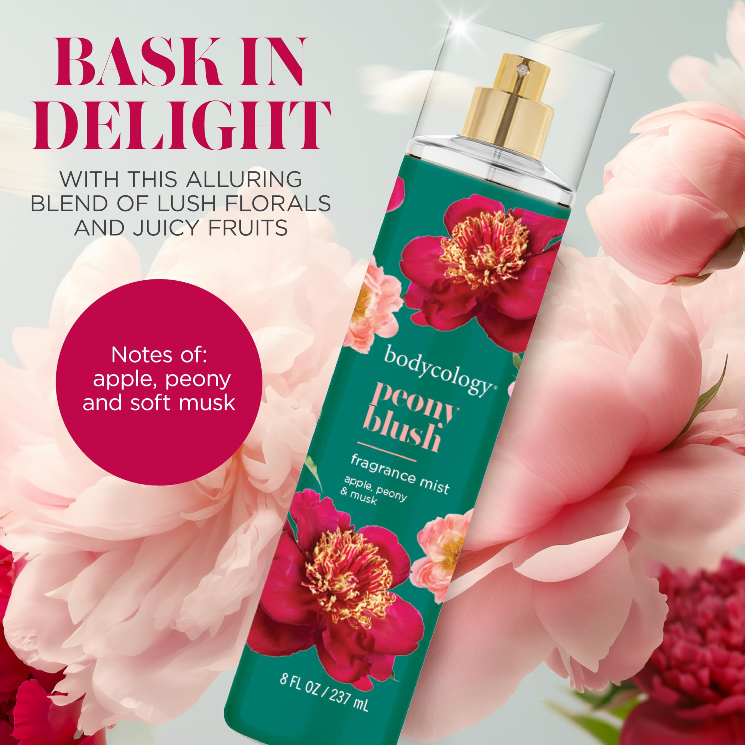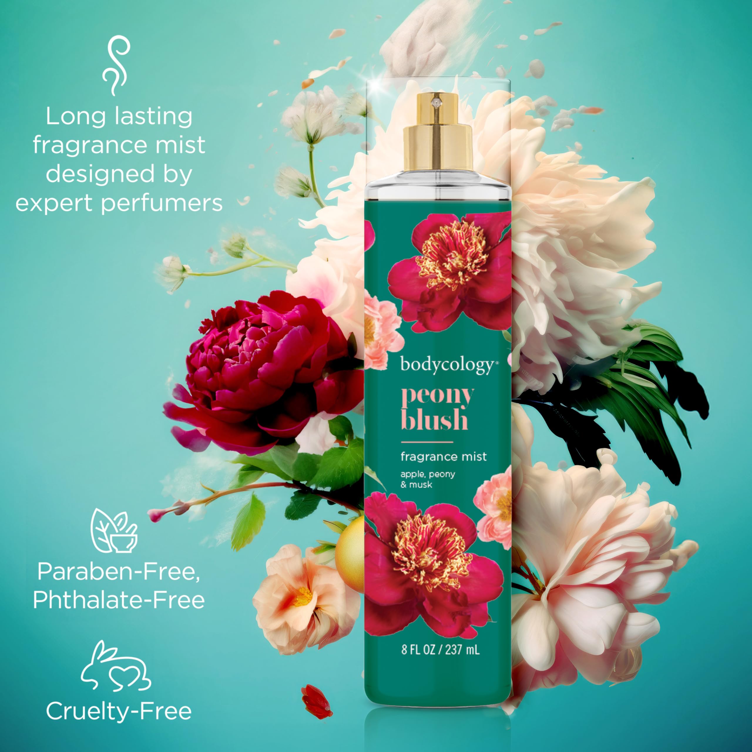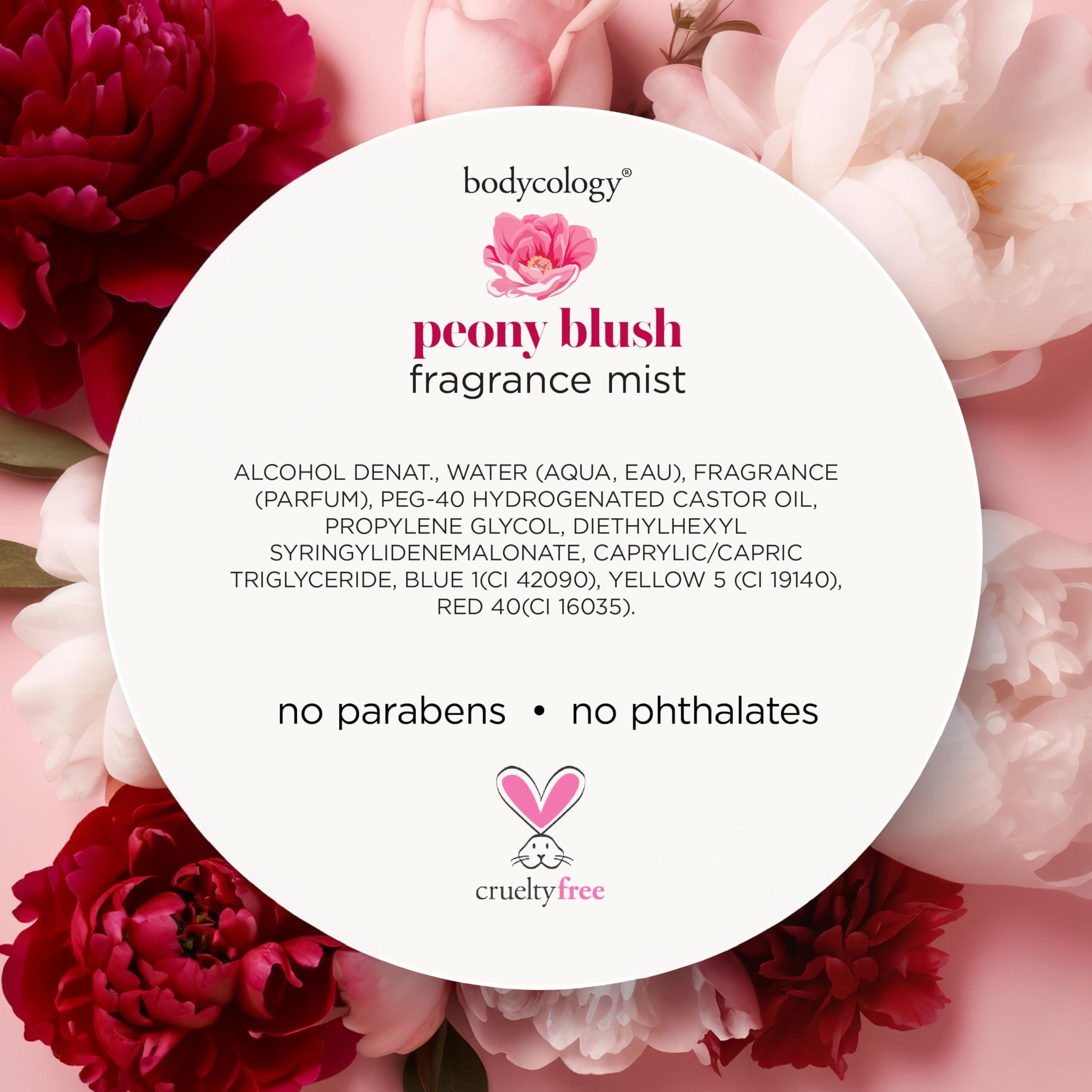 Wrap yourself in this captivating blend of juicy fruits and lush florals when you wear the Bodycology Peony Blush Fragrance Mist. With just a spritz or two before your day begins, you can carry the gorgeous scent of fresh apples, sweet peony, and warm musk that will stay with you for hours. Cheerful and sweet, we created this fragrance to delight your senses. Spritz it on your wrists, neck, and shoulders or try spraying the mist into the air and allowing it to fall gently onto your skin. Floral and fresh, this fragrance mist will quickly become a part of your beauty routine. This fragrance mist is the perfect follow-up after moisturizing with our Bodycology Peony Blush Body Cream. Mix and match with our other fragrance mists to create a scent that is uniquely yours. All Bodycology products are paraben, phthalate, and cruelty-free.