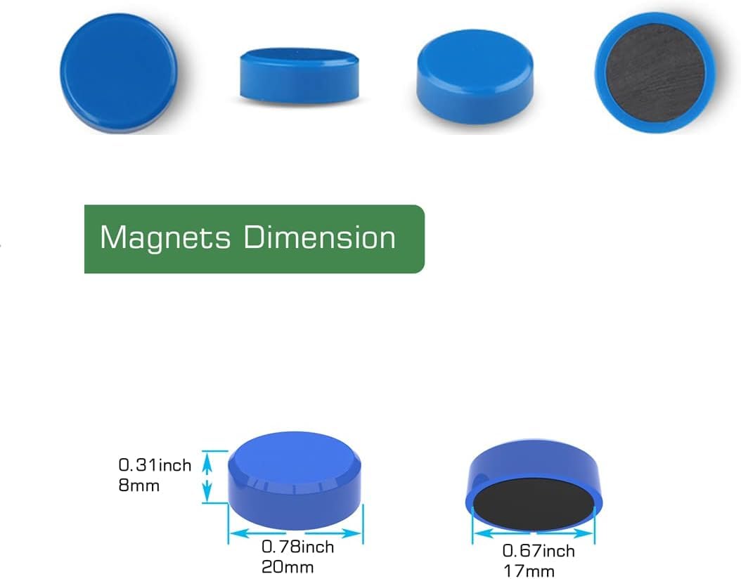 Recommended for adults aged 18+. Keep magnets away from children and pets Fridge Magnet Package: This amazing package consists of 20 fridge magnets, each available in 2 vibrant colors (as shown in the image). These fridge magnets are perfect for adding a splash of color and functionality to your refrigerator. With an outer diameter of 20 mm (3/4 inch) and a thickness of 8 mm (3/10 inch), these magnets are an ideal choice for your fridge.