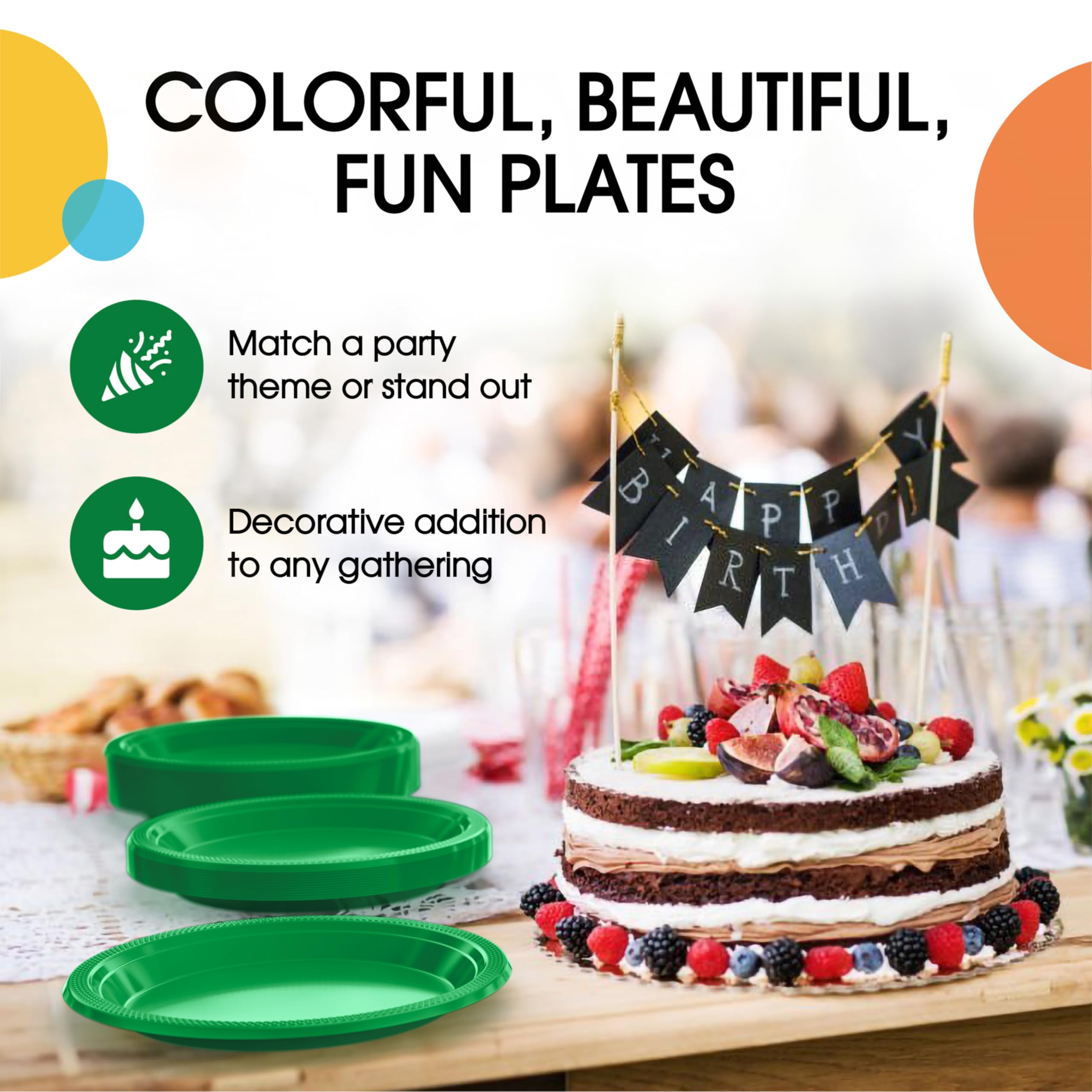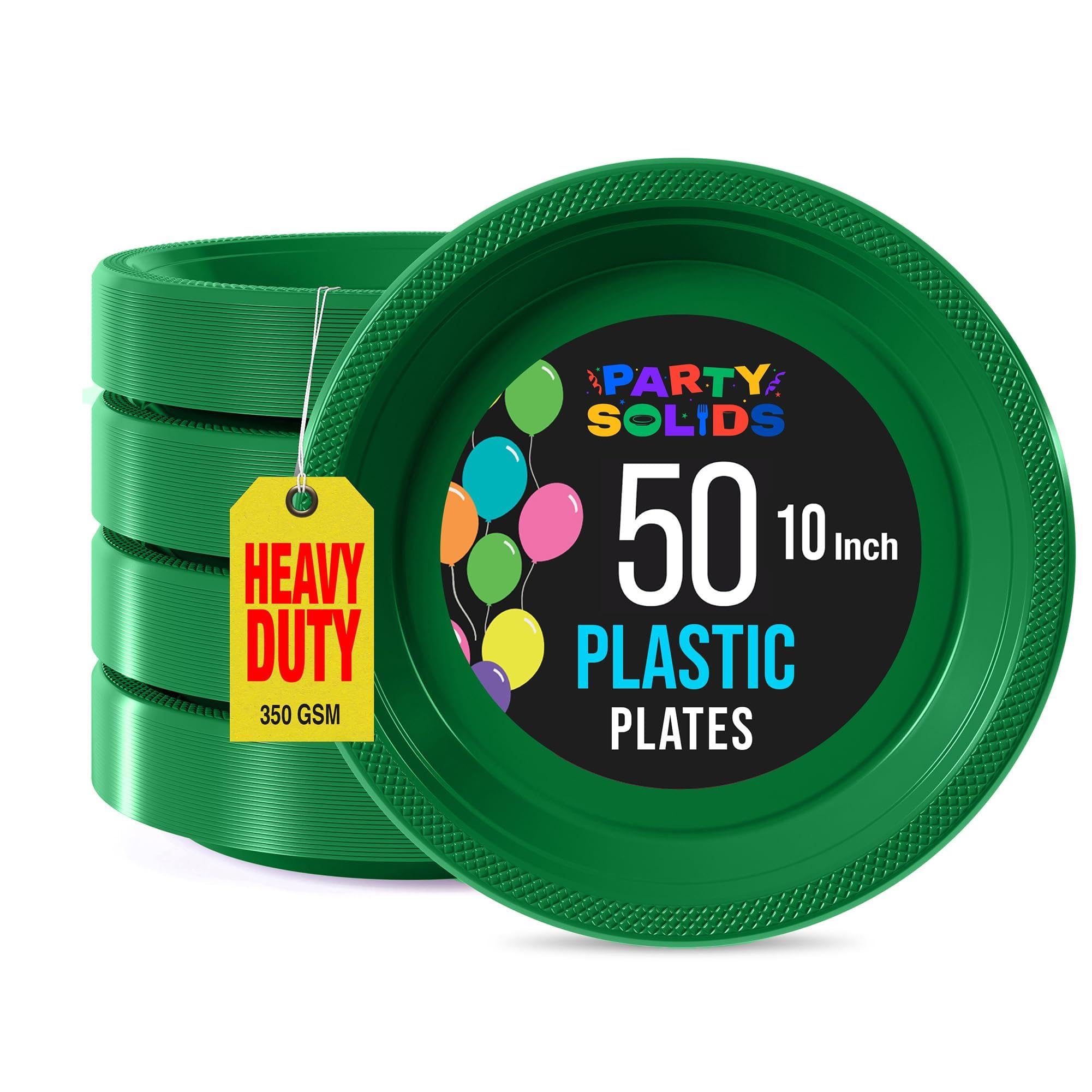 Includes: Each pack comes with 50 green 10-inch dinner plates. These plates may be used as dinner plates or cake plates and also make a great use as picnic supplies. Having these will complete your plastic dinnerware collection.