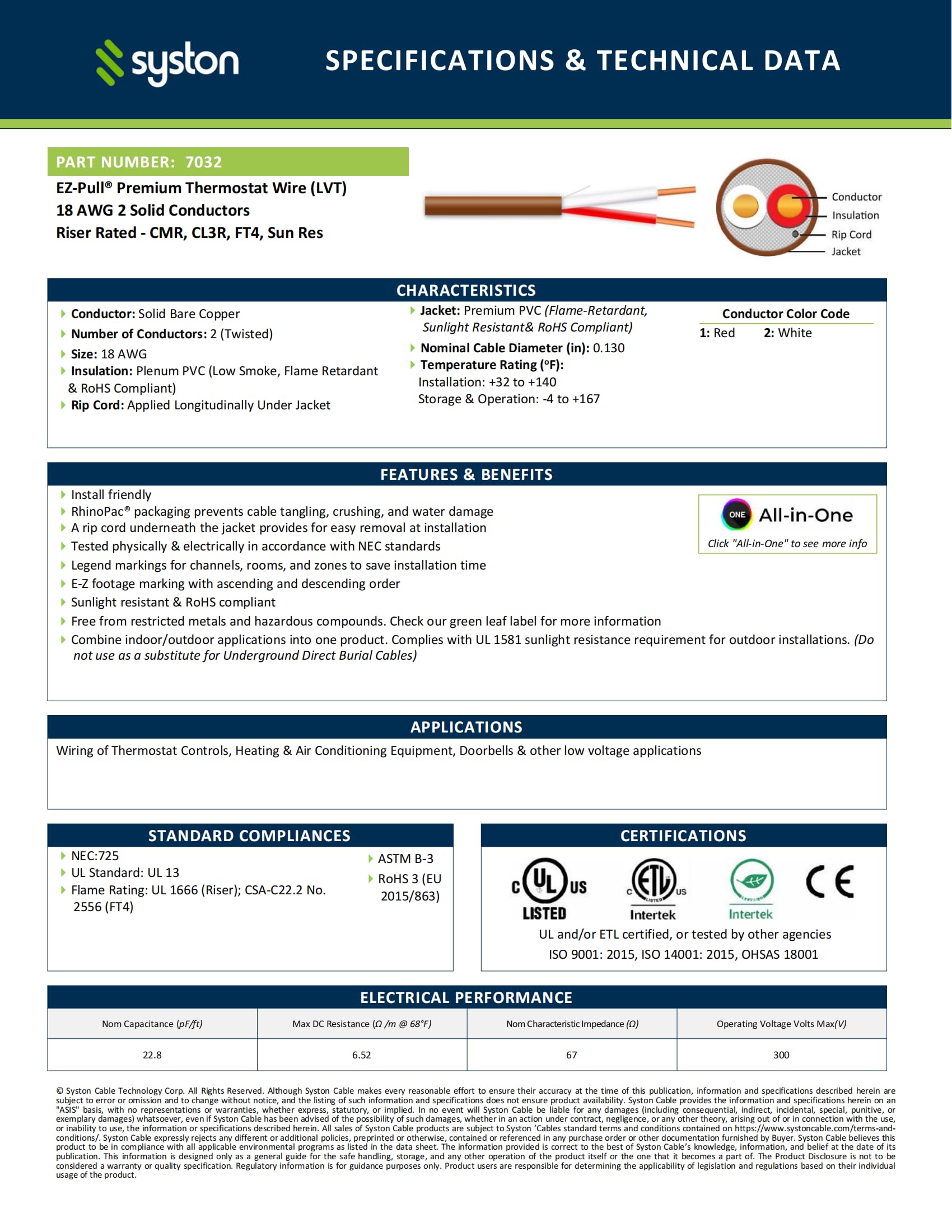 Pure Copper Conductors: Our thermostat cable is built with solid pure copper conductors, providing maximum conductivity and reliability to ensure that your systems run smoothly.