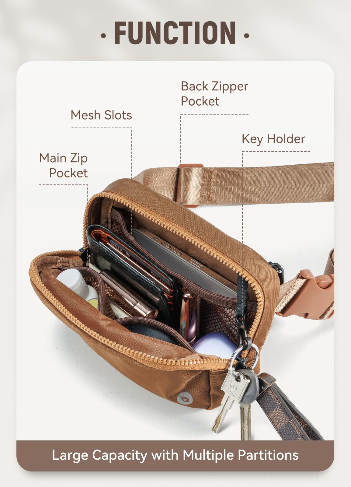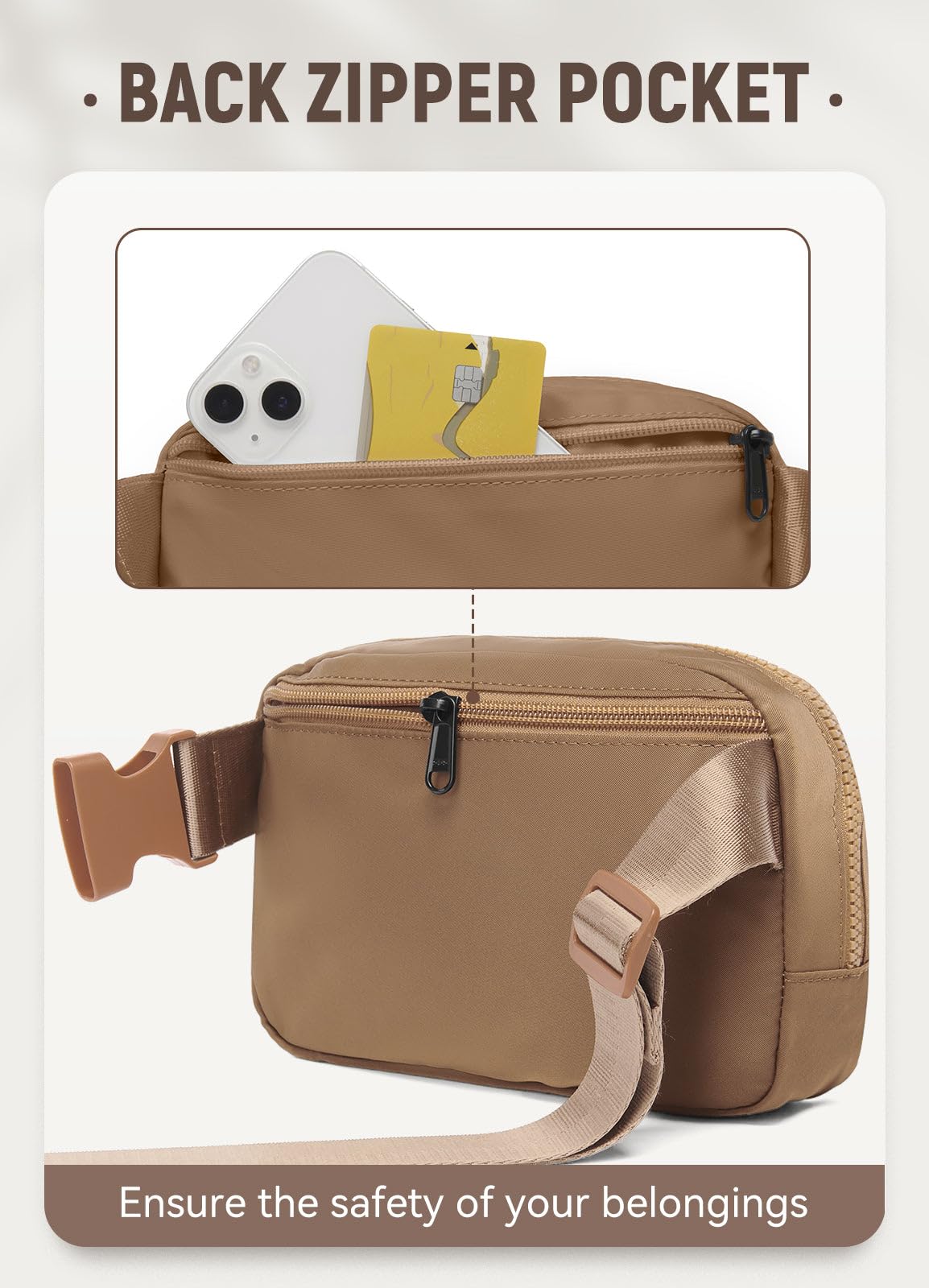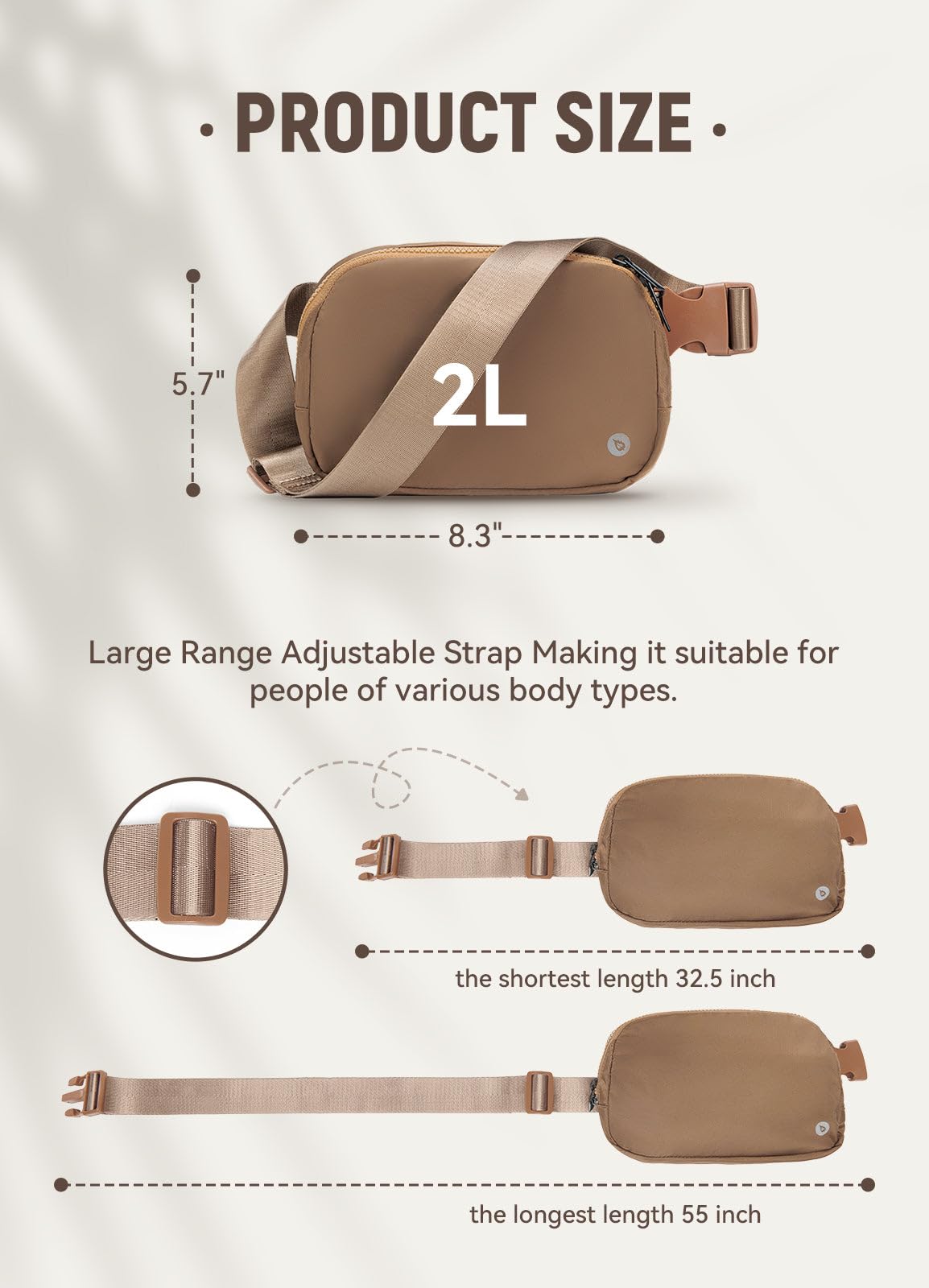 Large Range Adjustable Strap: The strap is adjustable from 32.5" to 55"(the length includes buckle&bag), allow you to wear this fanny pack as a waist bag, backpack, or crossbody bag according to your needs.