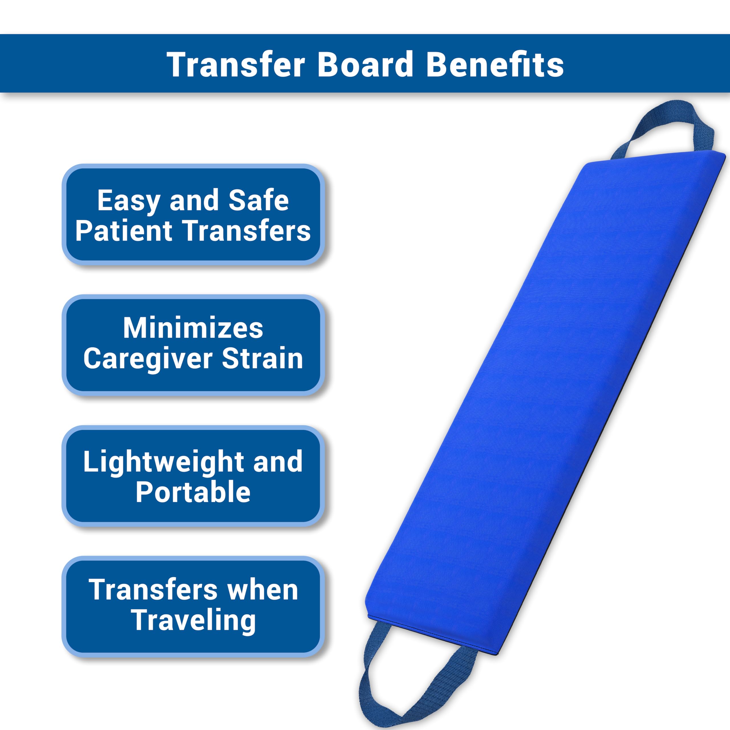 Lightweight with Reinforced Handles: Features dual webbing handles for easy positioning and transport. Lightweight yet strong, this transfer board supports up to 450 lbs, for uses in home care and therapy settings.