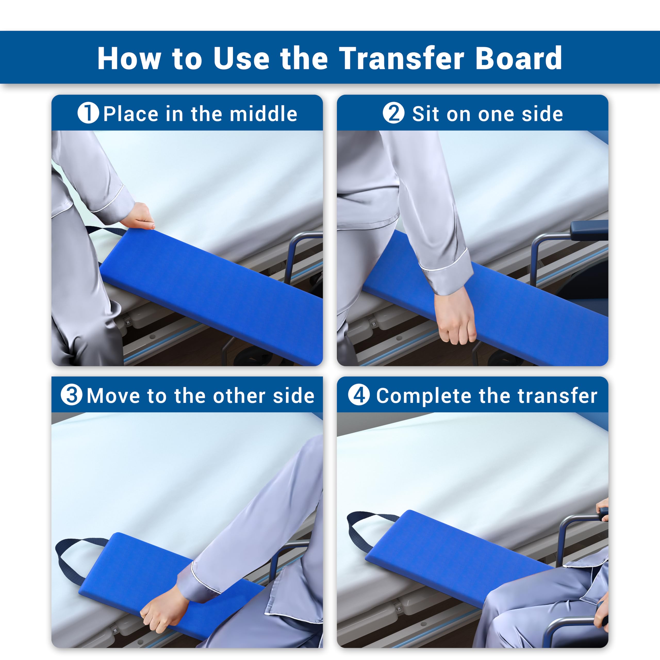 Non-Slip Base for Safer Transfers: Unlike standard wood transfer boards, this slide board features a high-friction bottom that stays securely in place, providing safer transfers to and from beds, wheelchairs, and chairs without slipping.