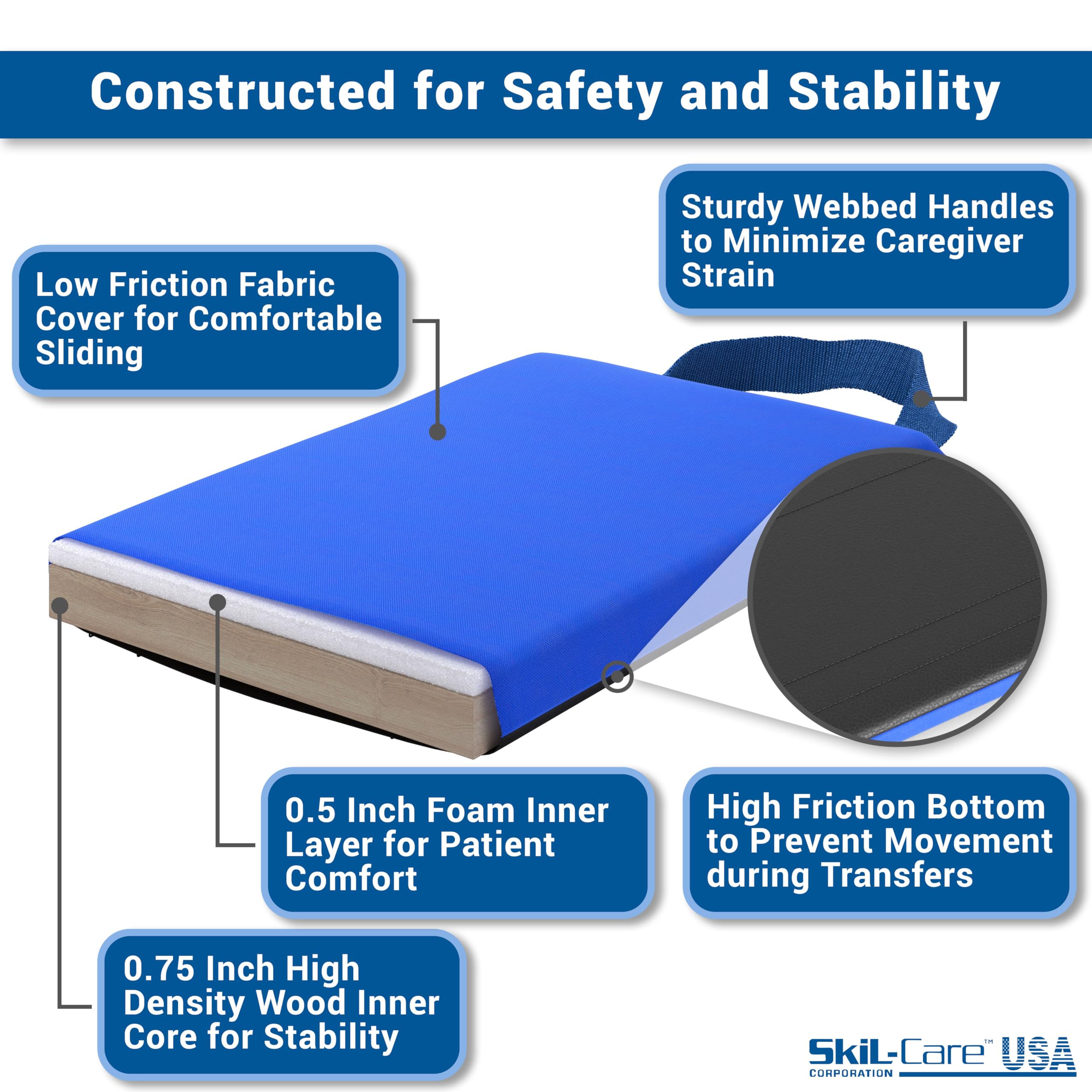 Smooth Low-Friction Surface: Designed with a smooth nylon surface for easy gliding, this transfer board reduces resistance during moves, ideal for comfortable sliding board transfer to wheelchair. Can be used alongside the Skil-Care Transfer Belt.