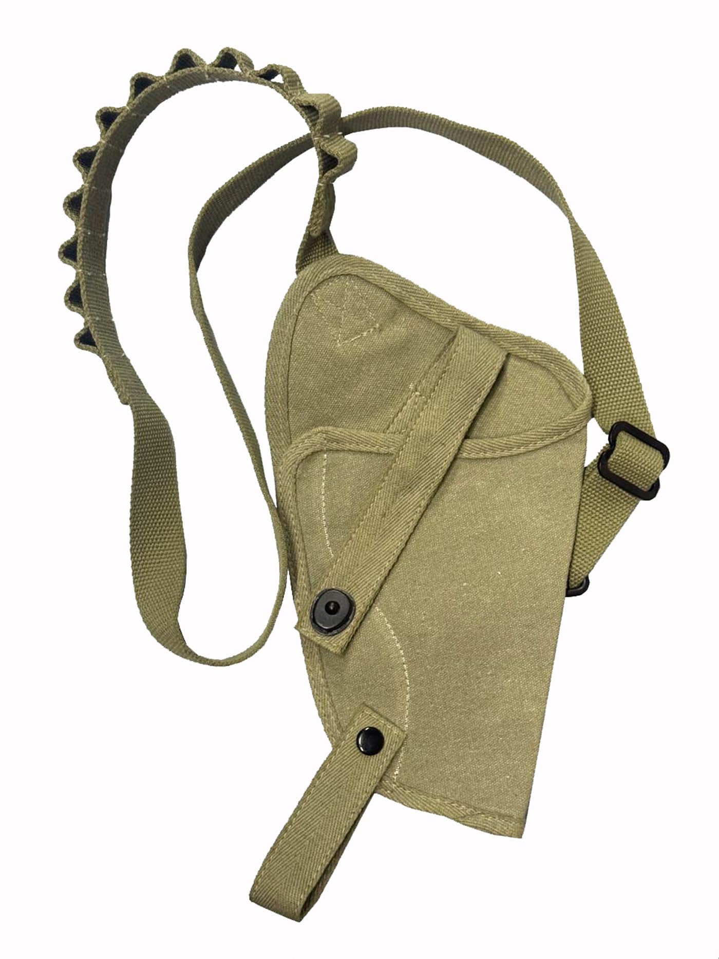 Officially Licensed M3 Victory Revolver Holster with 12 Shell loops. Will fit US .38 Special Victory Revolvers, Smith & Wesson K Frame Revolvers. Will not fit anything larger like L or N frame revolvers. Will not fit Semi Auto pistols. Shell loops fit 12 rds of 38 Special. The Victory Revolver and Shells are not included in the sale they are there to show the fit.