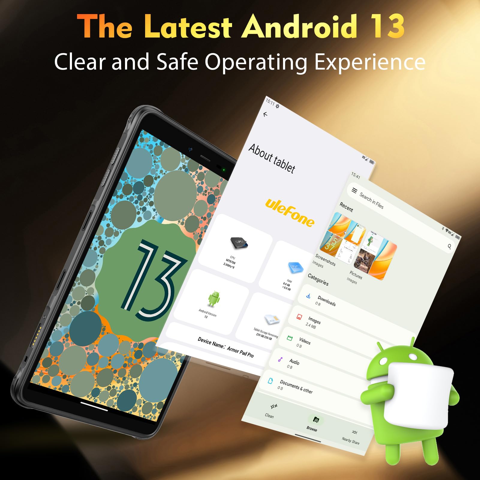【US Military MIL-STD-810H Certified】Ulefone Armor Pad Pro is constructed using tough, shock-absorbent materials and engineered to handle the hardest jobs. This rugged tablet comes with high IP68 and IP69K ratings against water, dust, and dirt. It’s even MIL-STD-810H certified, which means superb durability that survives extreme temperatures and multiple drops from 1.5 meters.