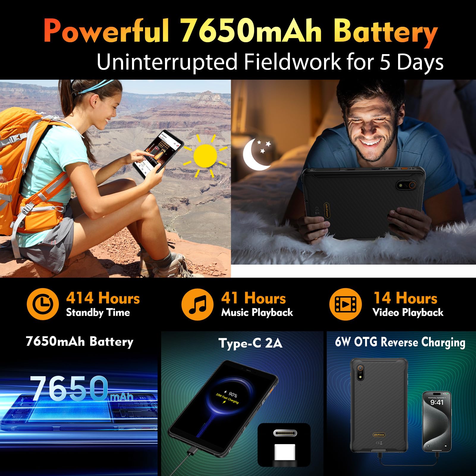【Powerful 7,650mAh Battery】Its massive 7,650mAh battery capacity gives you the confidence to go through an entire workday or outdoor activities, with up to 14 hours of intensive tasks, team communication, GPS tracking, and video viewing.