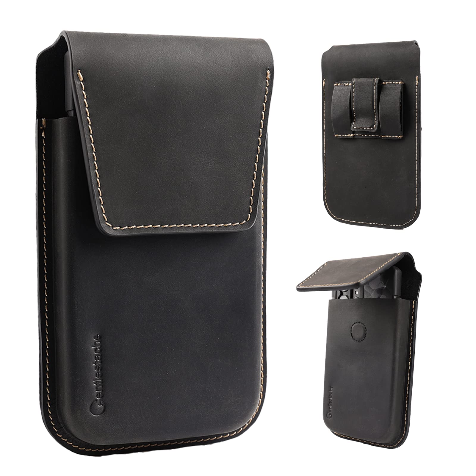 Pre-Shaped Design-The preformed opening design makes the pocket of the leather belt pouch wide enough to allow you to insert and remove the phone easily. The inner dimensions of the cell phone holster with belt clip are 6.85" x 3.6"x0.7", and the X-Large leather cell phone case fits most smartphones with Protective Case.(fits S22 Ultra with thin case but not with Otterbox Defender)
