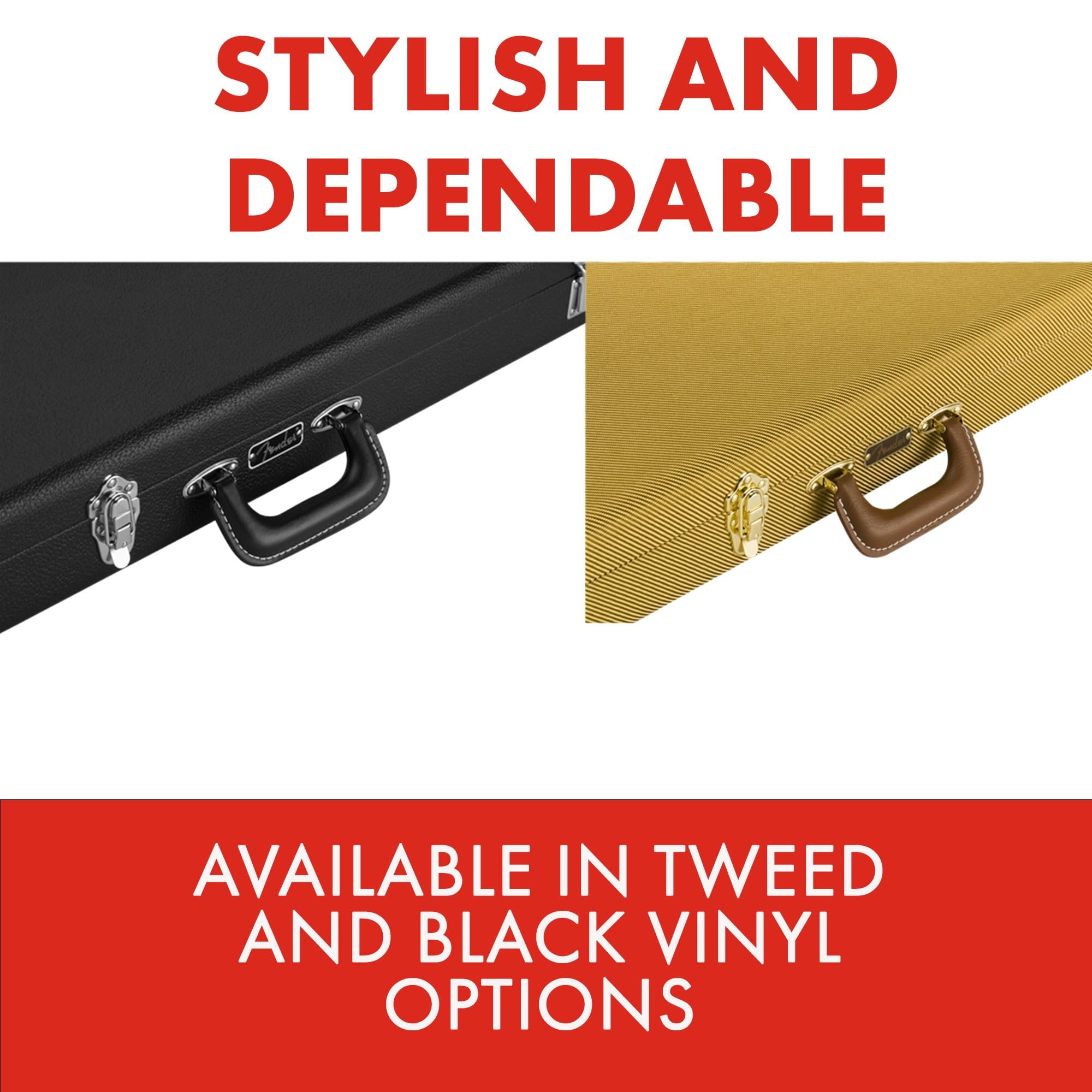 Classic Series wood cases are a stylish and dependable way to protect your Fender electric guitar. Crafted with road-reliable materials, this 3-ply hardshell wood case boasts a vinyl wrapped steel carry handle and draw latches in addition to triple chrome-plated hardware throughout the case. A soft crushed acrylic plush interior lining ensures your guitar remains scratch and damage-free, while a spacious accessory compartment offers plenty of room for spare strings, picks, tuners�or whatever small items you wish to carry with you�with lasting style and peace of mind.