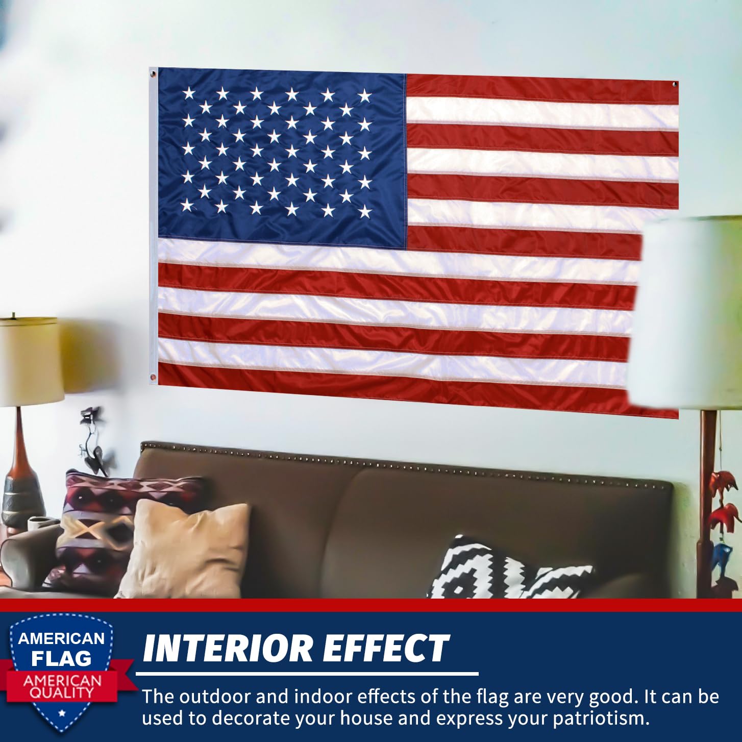 Versatile Decor:Ideal for framing as wall art, a timeless piece that combines traditional craftsmanship with modern style. Whether you're looking to add a touch of American pride to your home decor this embroidered flag is the perfect choice.