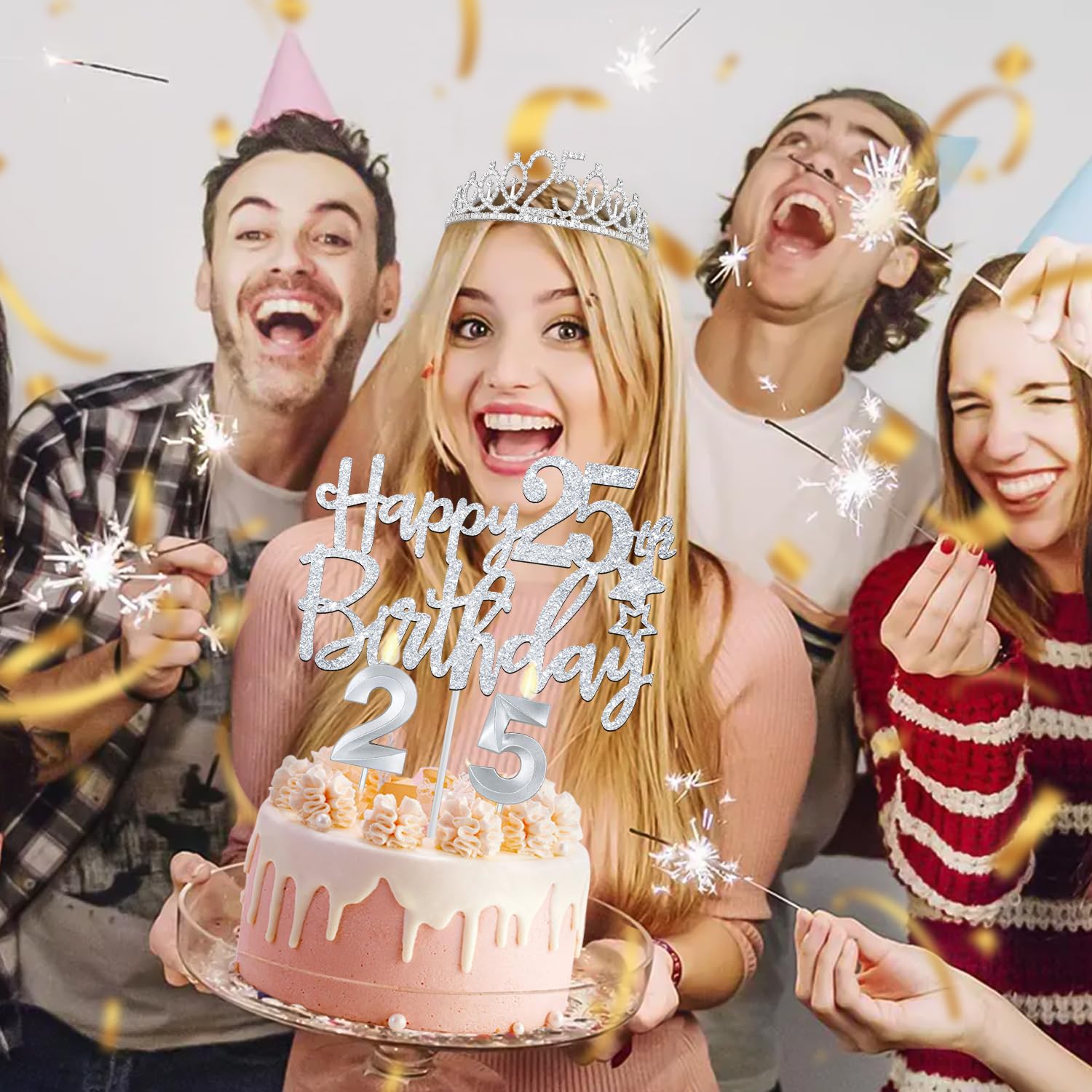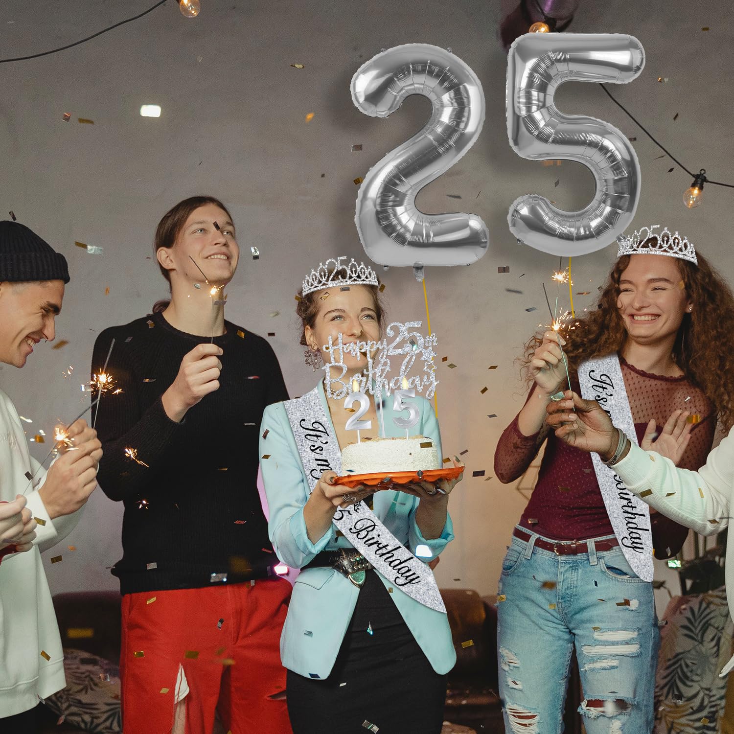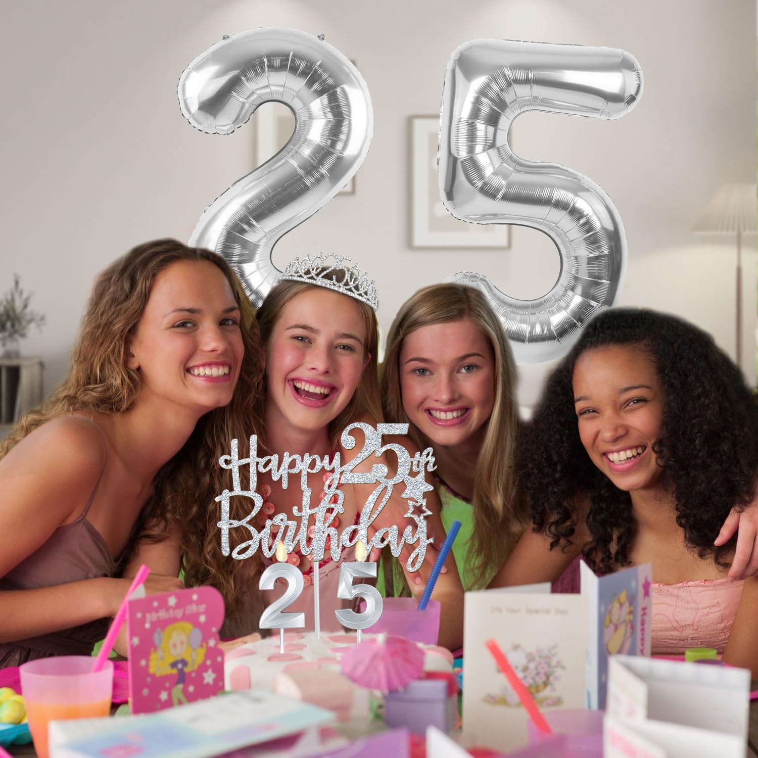 [25th Birthday Decorations Gifts]: This gorgeous silver happy womens 25th birthday gifts will definitely grab the attention of your guests, makes a special and memorable party that neither you nor your guests will never forget