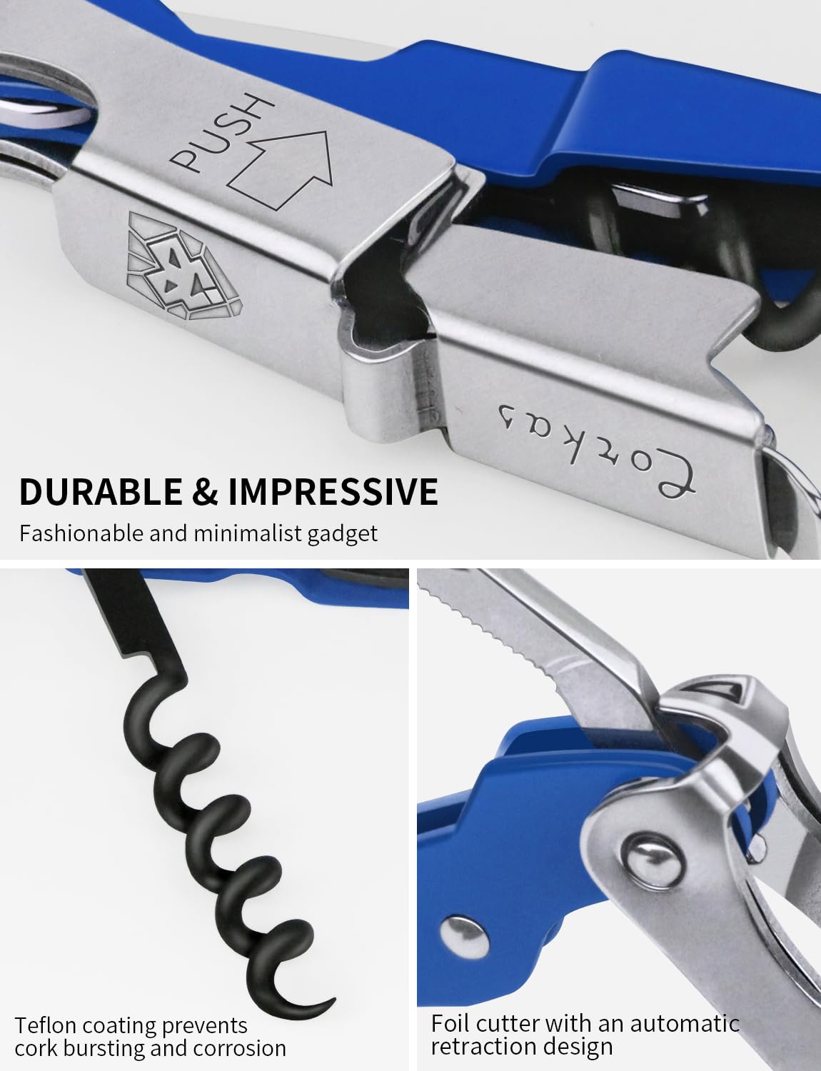 ✅【EFFORTLESS WINE EVERY TIME】Effortlessly glide through any cork with the CORKAS waiters corkscrew. The double-hinged fulcrum provides extra leverage for smoother extraction to ensure smooth, frustration-free uncorking. Its Teflon-coated worm could reduces friction and noise, easier to glide through corks, minimizing wear and tear, No more crumbled corks or wasted time – just perfectly extracted wine, ready to be enjoyed.