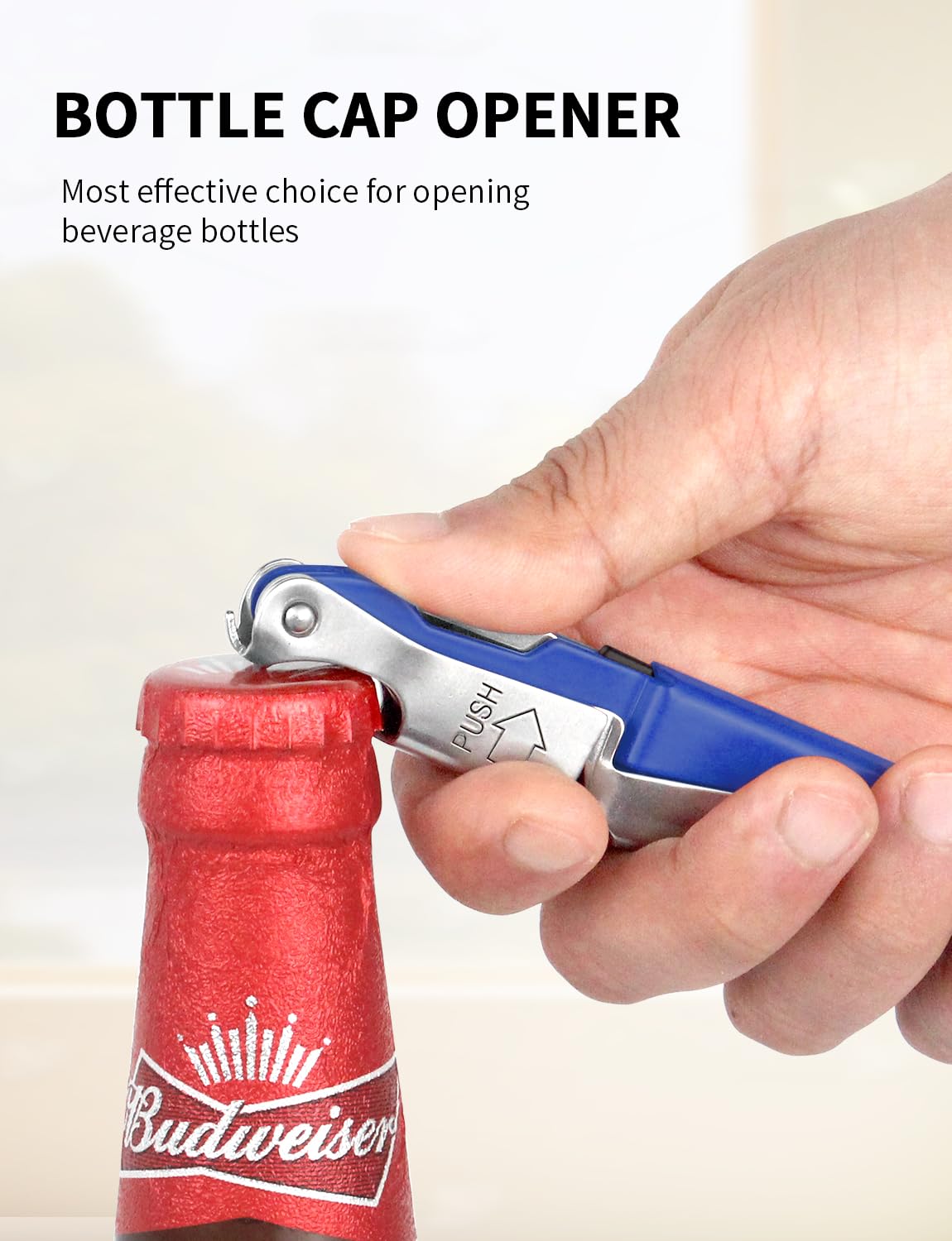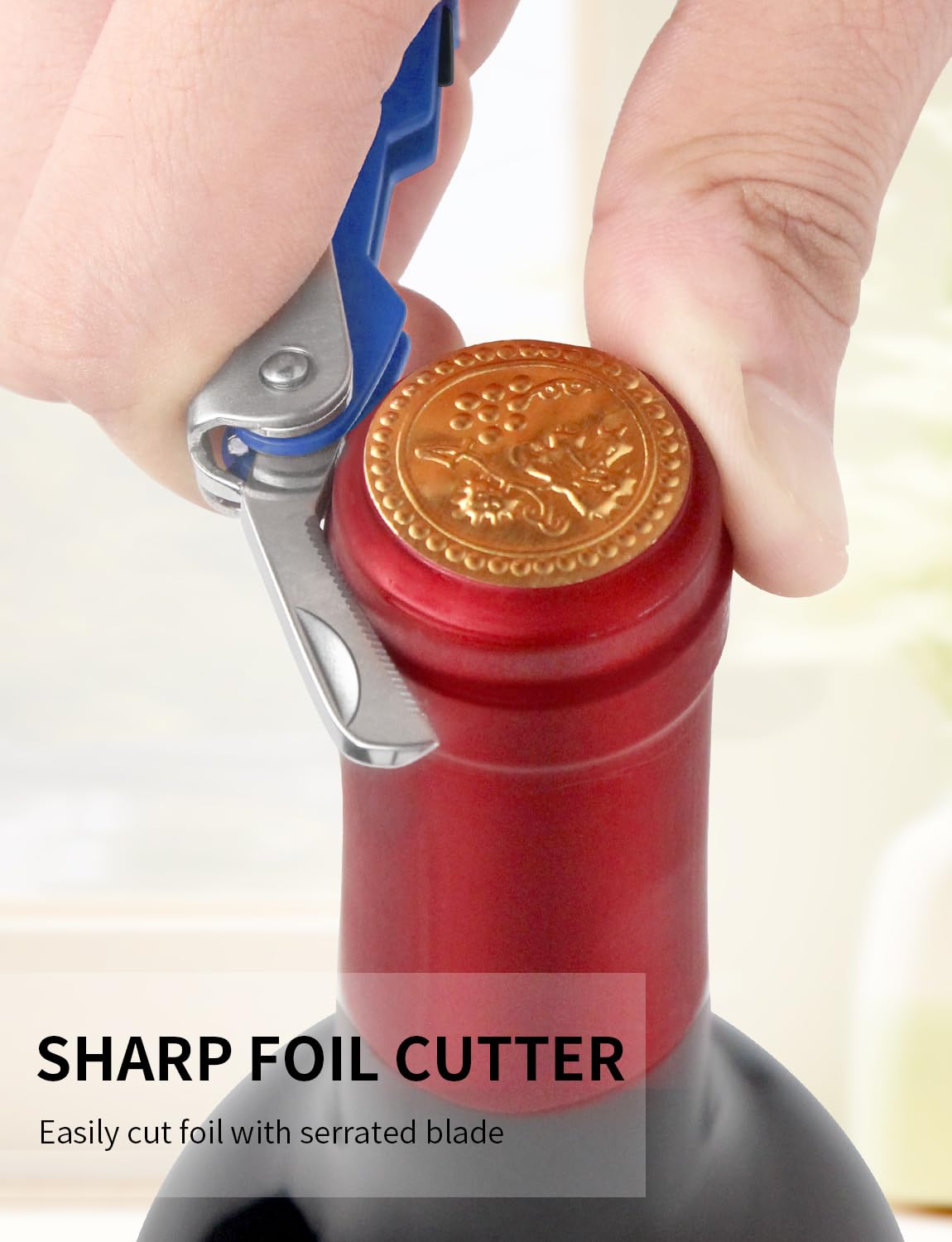 ✅【THE MULTI-TOOL MASTER FOR ALL BEVERAGES】CORKAS bottle opener goes beyond just uncorking wine! This versatile tool features a sharp serrated foil cutter to remove bottle seals and a built-in bottle cap opener. After cutting the foil, just pull open the lever arm, the knife will close automatically! Whether you're enjoying a glass of wine, a refreshing beer, or a bubbly soda, the CORKAS is your one-stop shop for effortless beverage opening.