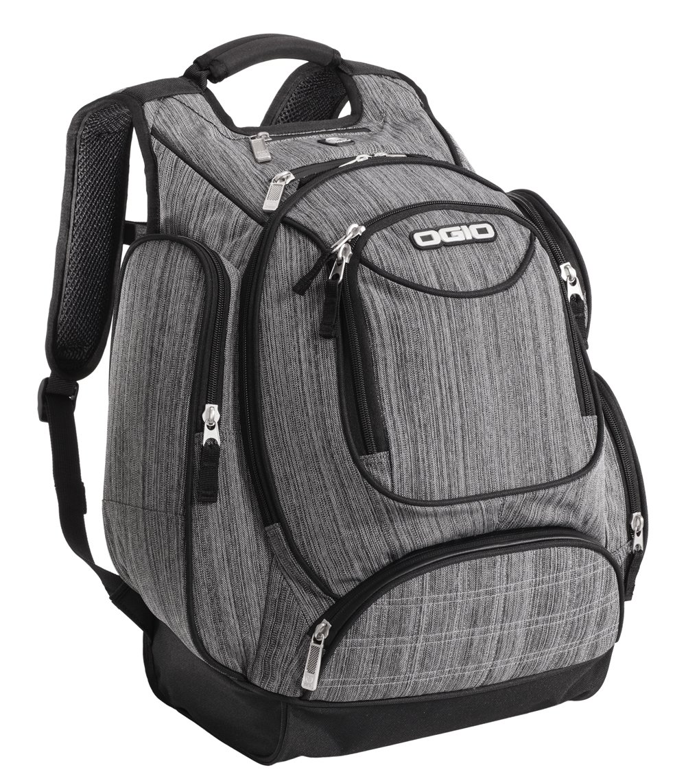 Description 711105 OGIO - Metro Backpack. The core of OGIO's street pack lineup, the Metro offers padded side-entry laptop sleeve, dedicated accessory storage, and a fleece-lined drop-in audio pocket with headphone exit port. Behind its distinctive quilted half-moon pocket is additional fleece-lined storage for a mouse, power cord and other tech gear. Made from 400 x 400 dobby pindot nylon/600 denier poly, weighs 16 oz. Heavy duty reinforcements. Sternum strap. Fits most 15" laptops. Dimensions: 21"h x 14"w x 9.5"d; 2, 200 cubic inches.