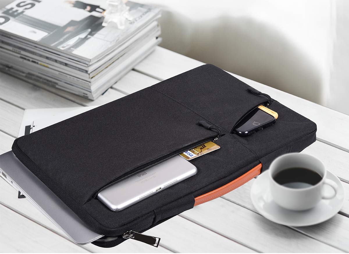 【ENOUGH SPACE STORAGE & SMOOTHLY ZIPPER】- Two pockets in front and one large pocket in back, enough space to keeping, mouse, cable, cellphone, memory cards, external hard drive, pens etc. Sleeve bag with double zipper can be fully opened easily access your tablet/laptop