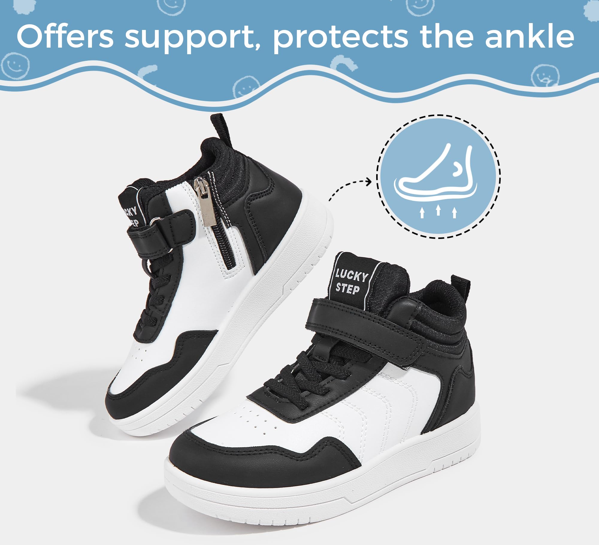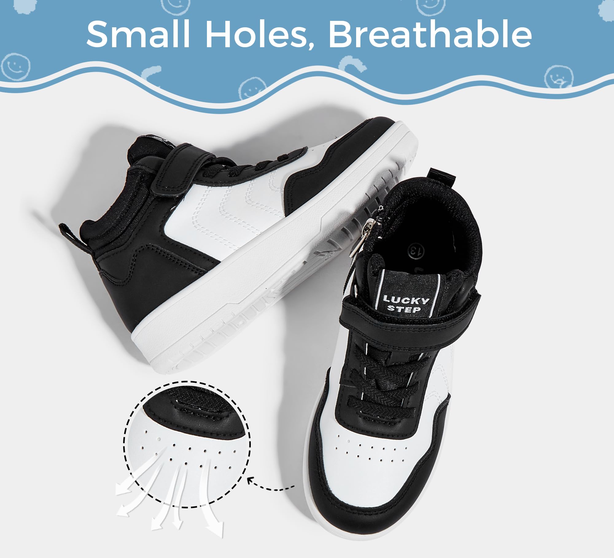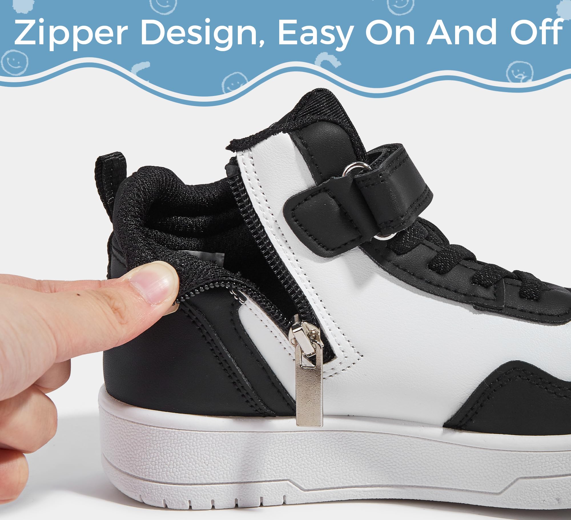 【Convenient】: These kids' sneakers come with both hook-and-loop and a zipper design, combining for easy, independent wear that’s both stylish and practical for active kids.