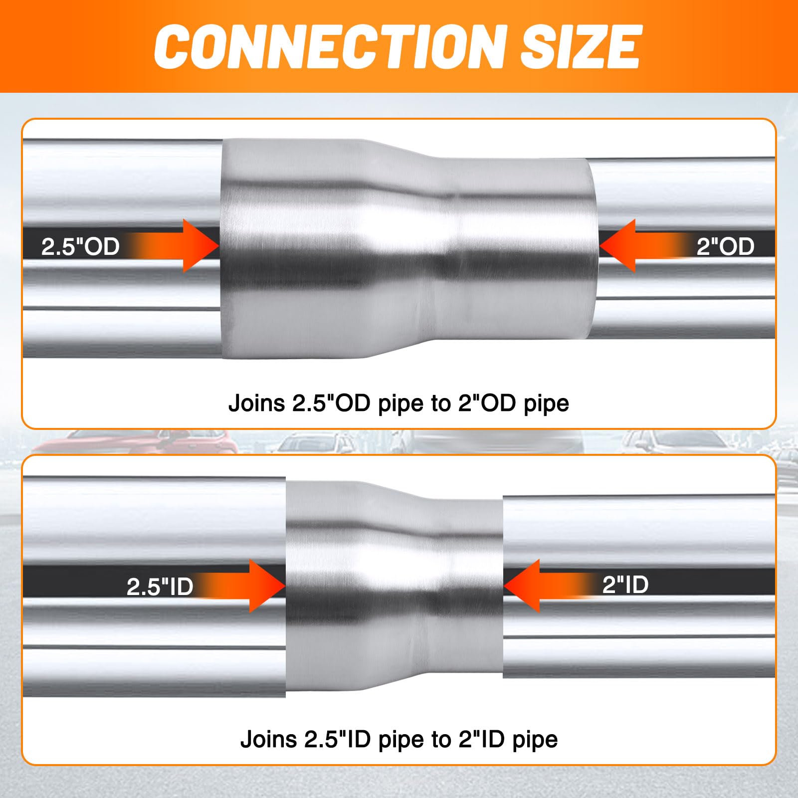 ➤ Package: 2Pcs stainless steel 2 to 2.5 Inch exhaust adapter. Universal used for all exhaust, turbo, intercooler, intake piping connection