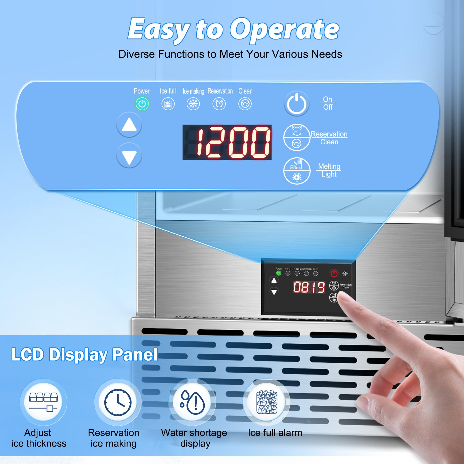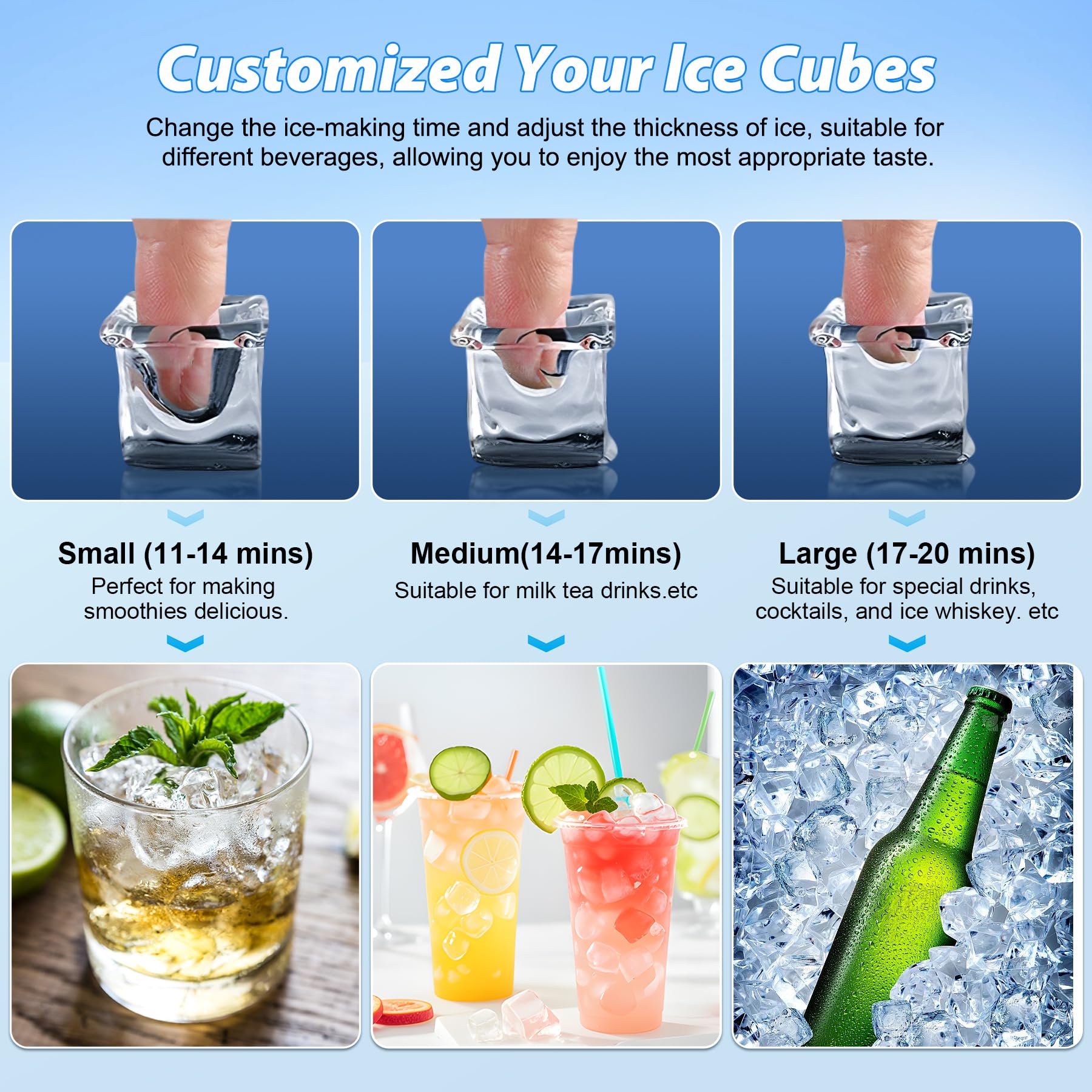 Timer Function & Optional ice Thickness- Set the time when the built-in ice Maker is turned on or when it stops running with the 24-hour timer function. Get ice cubes with different degrees of surface depression by setting different ice-making times, perfect for smoothies, cocktails, and whisky.
