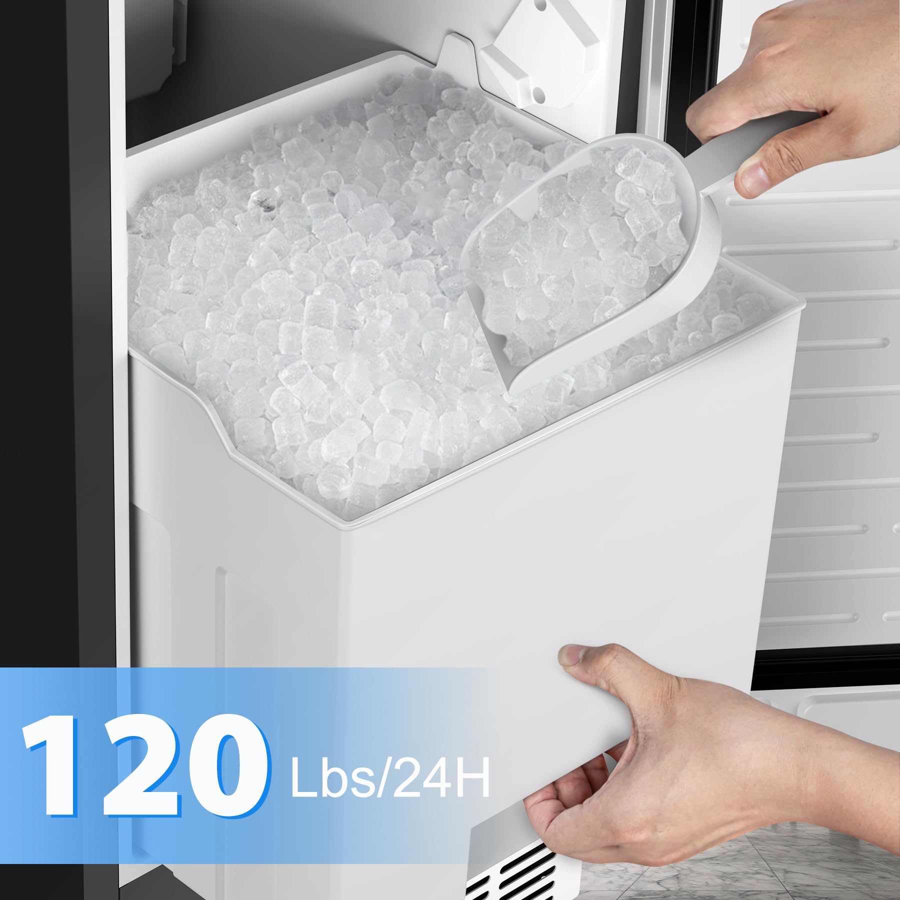 Large Capacity fast lce Making- This built-in ice maker produces 120 lbs of ice in 24 hours, making 40 clear cubes every 15-20 minutes for daily use.