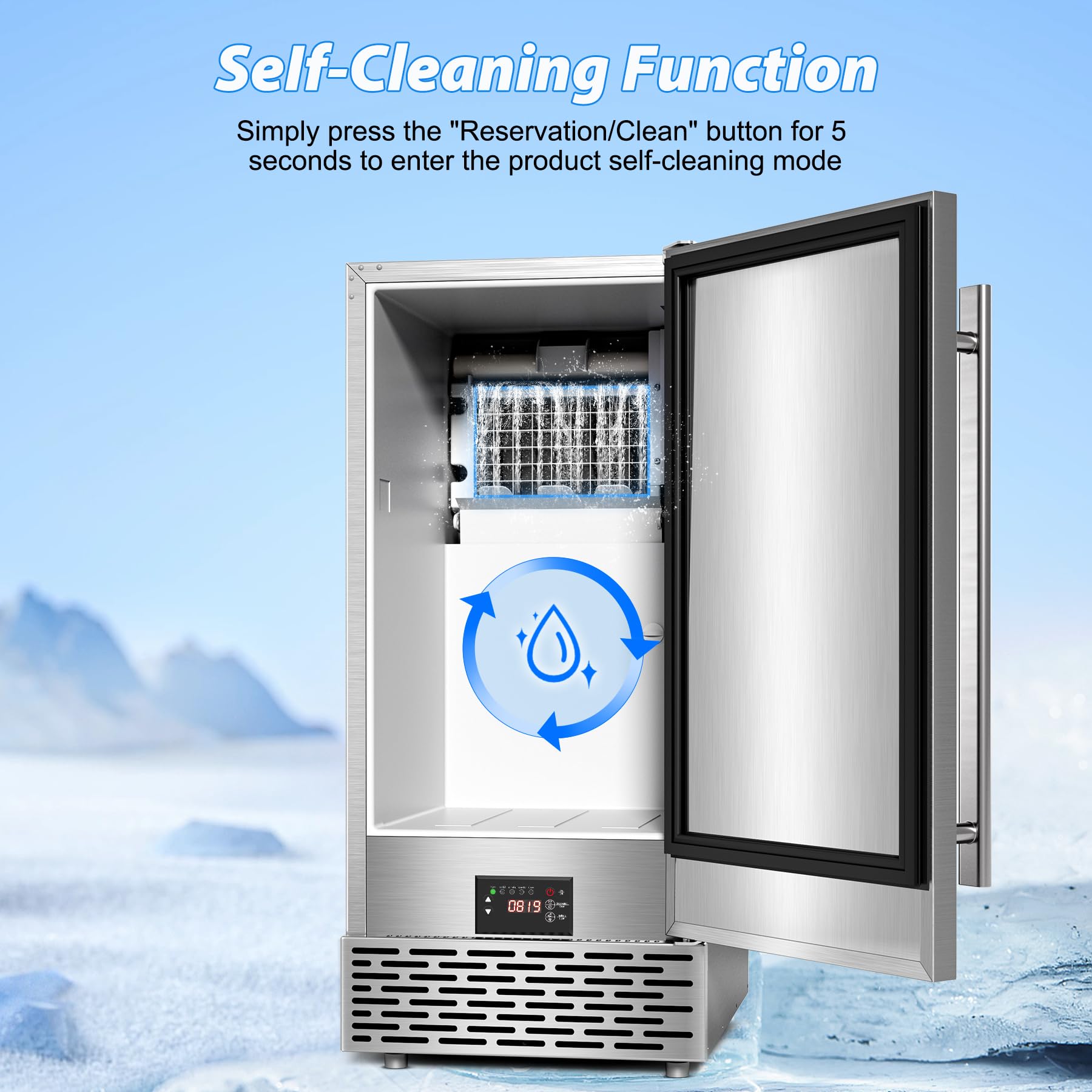 Self-Cleaning Function & Automatic Water Supply- Press the "Timer Clean" button for 5 seconds to activate the self-cleaning function. The under counter ice Maker water intake pipe on the back provides a continuous supply of ice, saving you from frequent refills.