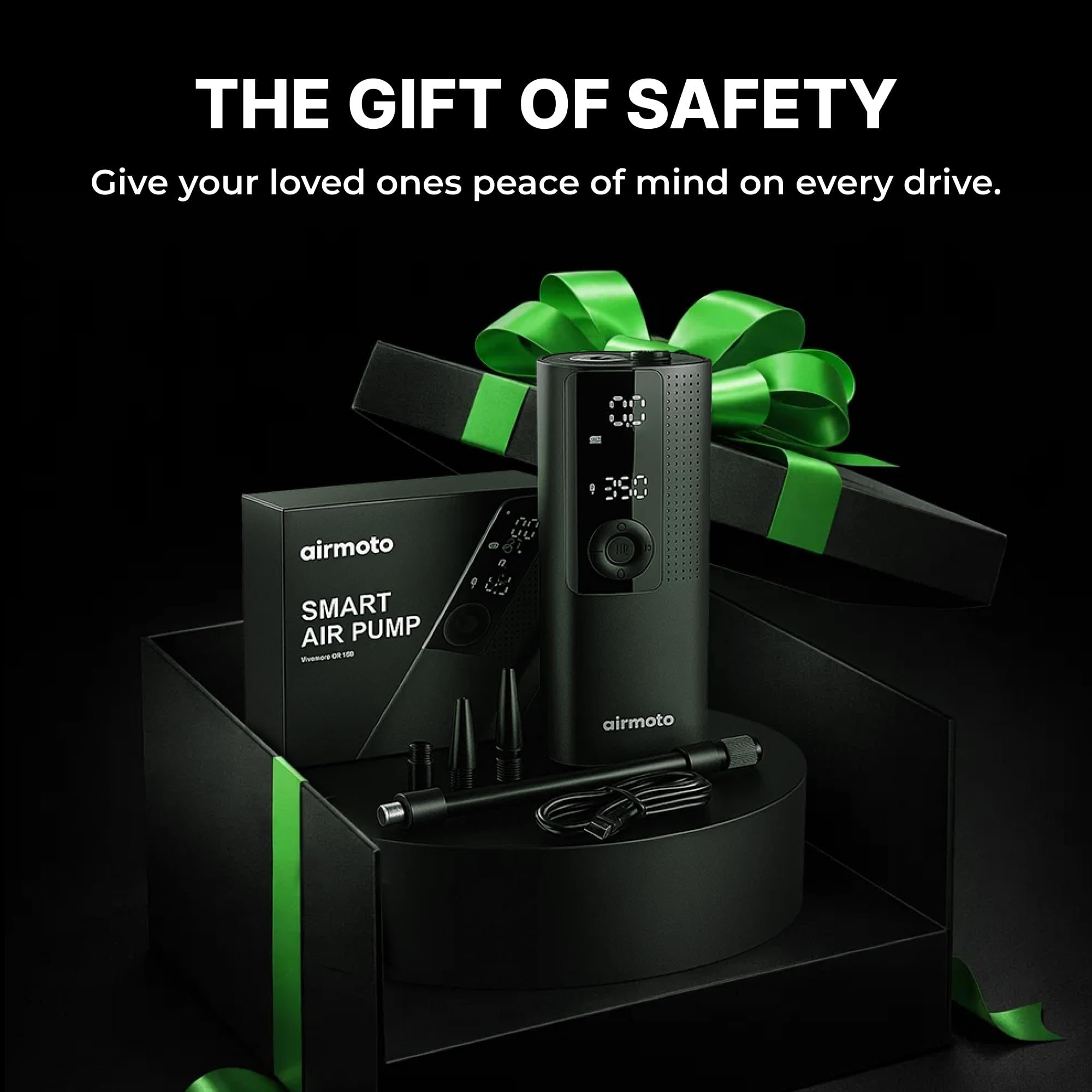 INVEST IN PEACE OF MIND: Perfect gifts for women and gifts for men. Conveniently store this portable air compressor for car tires in your glove box or garage, ready for use whenever needed. The package comprises 1* Airmoto Car Tire Inflator, 1* Air Hose with Schrader attached, 1* General Nozzle Cone, 1* Needle Adapter, 1* Presta Adapter, 1* USB-C Charging Cable, 1* Storage Pouch and 1* User Manual. For any questions or concerns, please feel free to contact us.