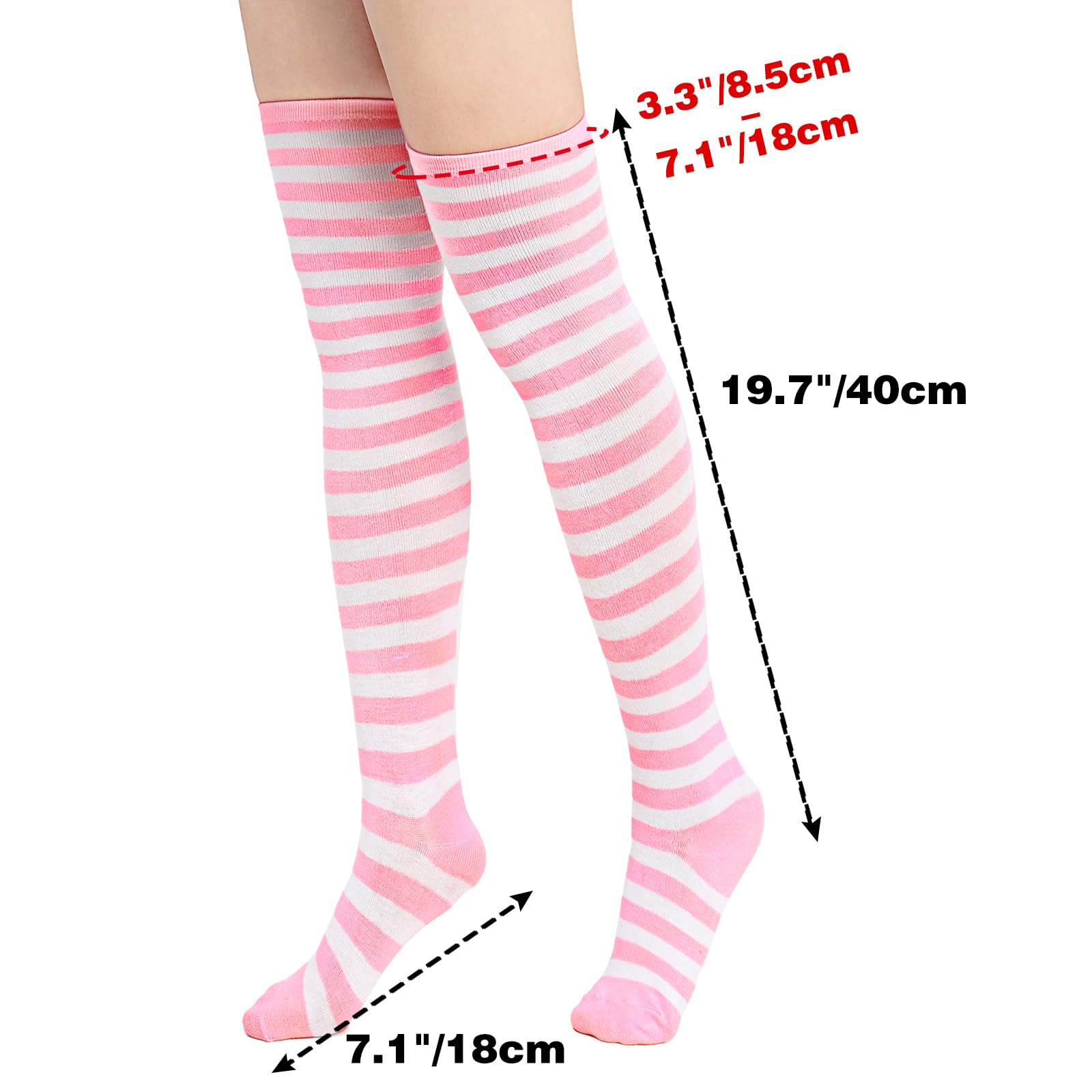 【NICE choice】【Good Match Choice 】 — These striped thigh high socks are super cute to match with shorts and mini skirts, great for daily wear, shows and cosplay convention, Christmas, birthday, party, comiccon, cosplay costume.