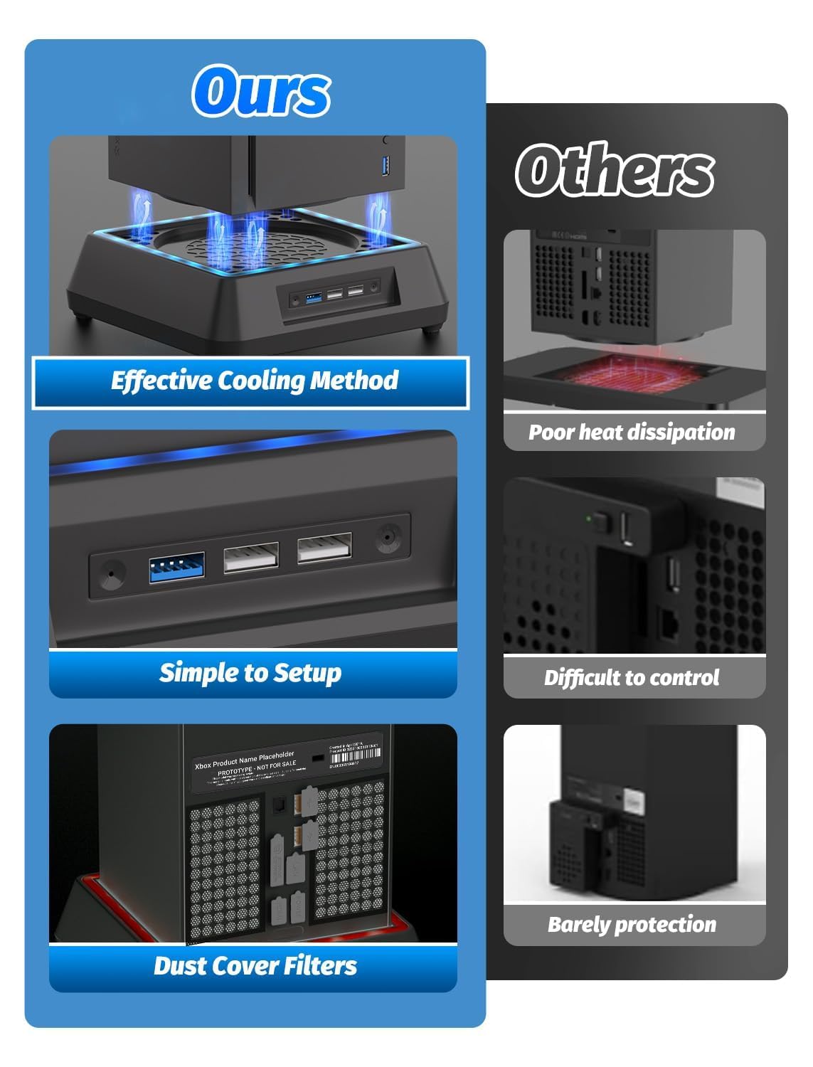 【🎄Charging Support with Dust Filters🎄】The Mviioe xbox series x stand with fan comes with 3 USB ports for accessory charging and a dust filter. Ensure not to connect to power over 5V 1A.