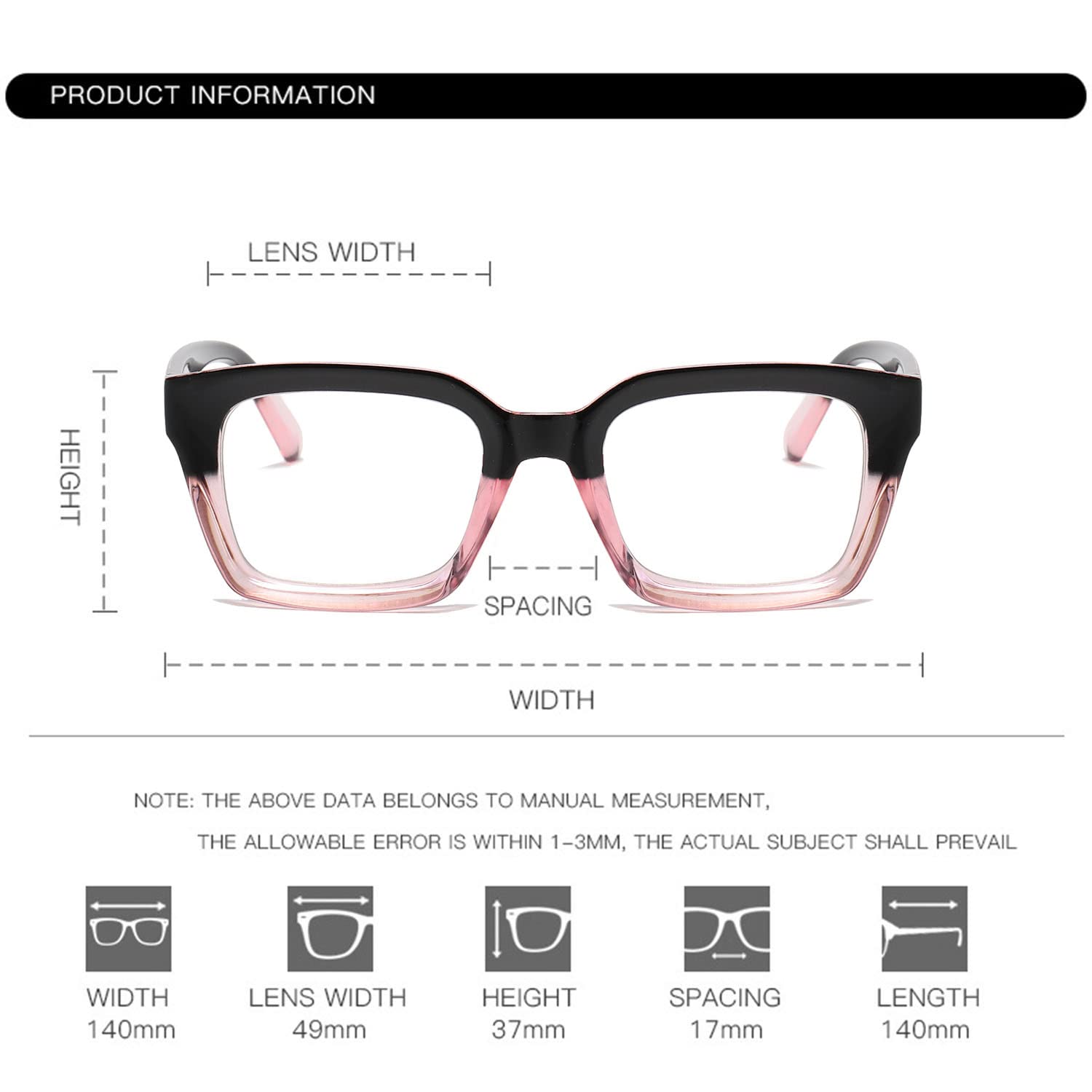 COMFORTABLE WEARING: The glasses frame comes with clear lenses that won't hurt your eyes. You can use them for clothing or fashion purposes. You can also replace them with your lenses.