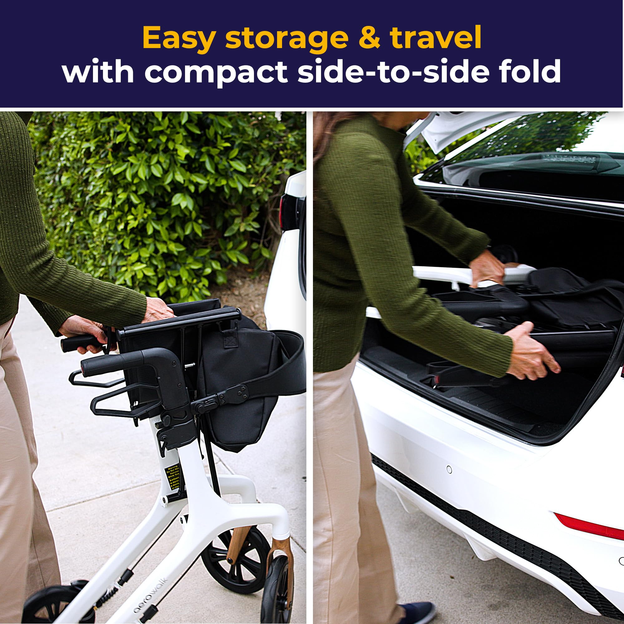 PORTABLE & PERFECT FOR TRAVEL – With its compact side-to-side fold, weighing in at just 15.2 lbs, the ultra-lightweight rolling walker is perfect for travel or daily use.