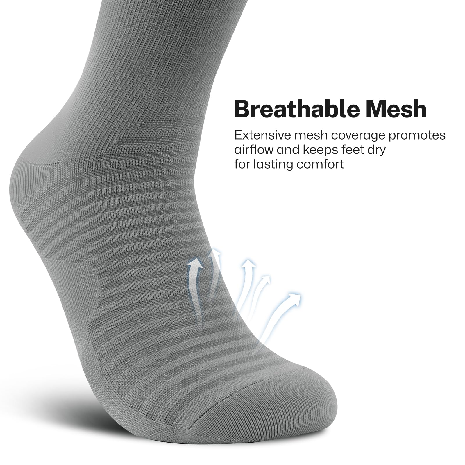 [MOISTURE-WICKING MANAGEMENT] Our compression socks men are made of comfortable breathable material with lightweight design. Mesh ventilation construction creates maximum airflow to keep your feet cool and dry. The fabric also helps keep your feet cool by sucking up all the sweat and moisture produced by your feet