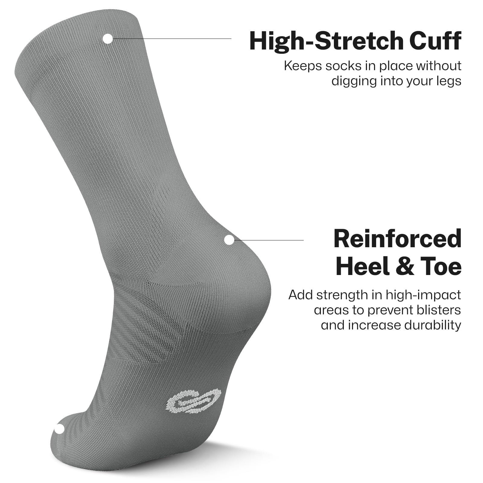[Comfortable and Durable] Extended design to maintain ankle stability. These running socks are of moderate height, between the calf and knee, giving a stable and comfortable feeling. Durable reinforced heel and toe make your cycling socks more durable. An excellent gift choice for joggers, athletes, fitness enthusiasts, office workers, travelers, and all kinds of people
