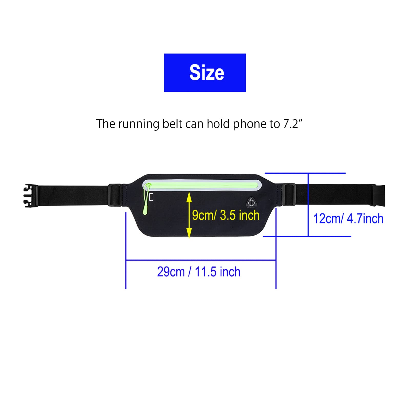 【Good Capacity】The running belt can not only hold the smartphone to 7.2", But also can hold passport,ID card,Bank card,tissue ,and keys etc. The compartments keep the phone separate from keys. It is very good women and men waist belt pack for running,workout,fitness and sports.