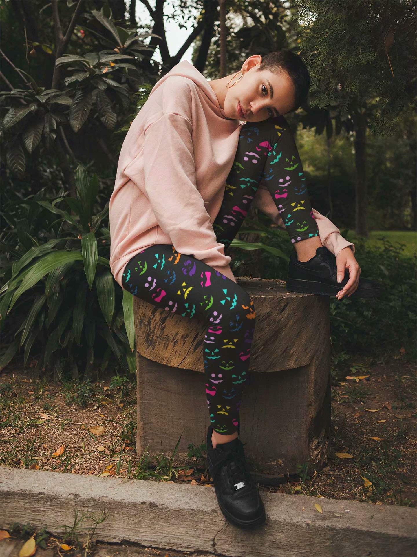 HIGH QUALITY 3D DIGITAL PRINT: 80s color splash leggings, colorful splattered web design neon pattern, messy art ink blob, paintbrush drawing, bright graffiti; No fading