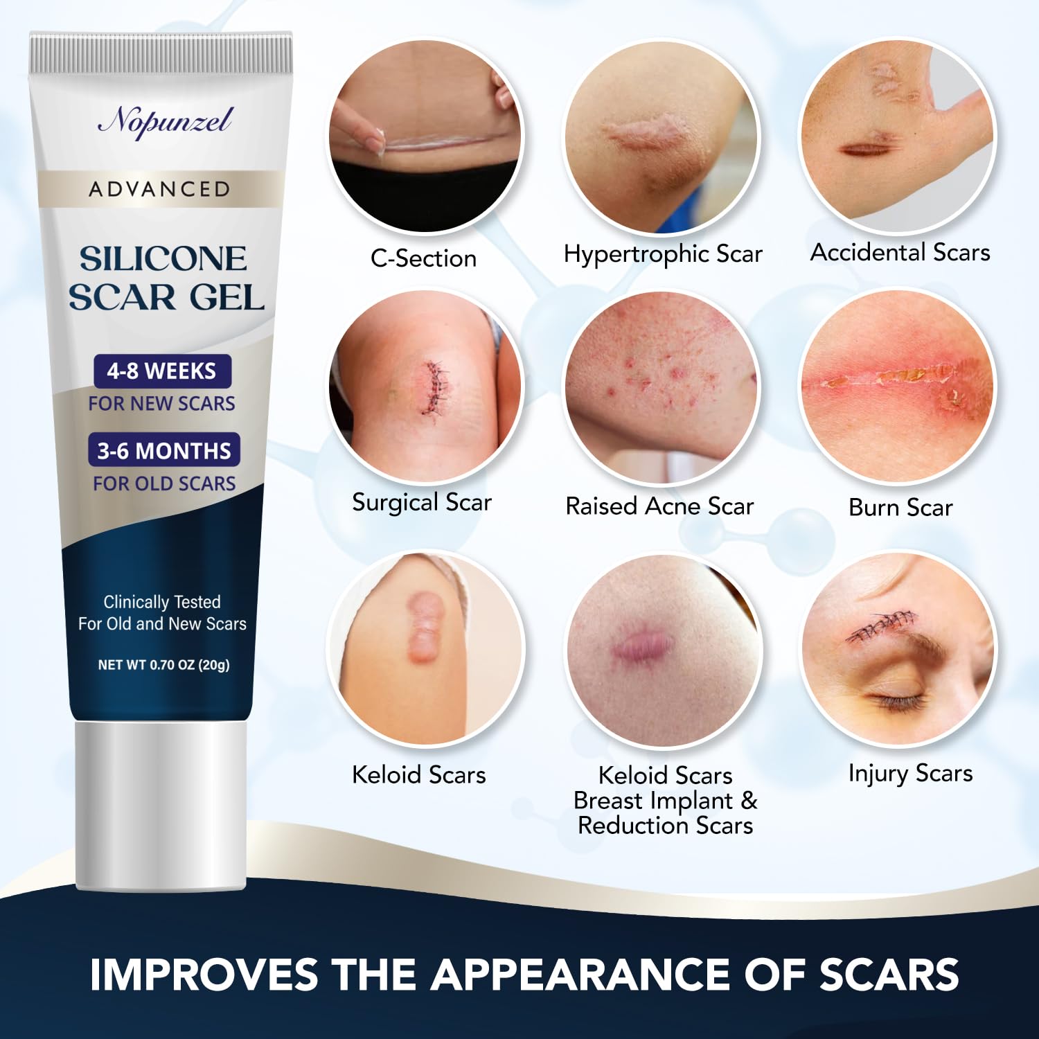 šŸ§”ć€Improve Scar Appearance怑NOPUNZEL scar gel, a non-surgical silicone gel, prevents scars and smooths skin. Recommended by doctors, its advanced medical-grade silicone is clinically proven to soften, flatten, and reduce scar visibility, helping scars blend closer to your skin’s natural texture and color with consistent use.