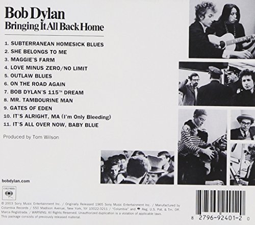 Amazon.com "You sound like you're having a good old time," a purist Dylan fan is spotted telling the artist in the documentary Don't Look Back just after the release of this, his first (half-)electric album. He certainly does. Updating Chicago blues forms with hilarious, tough lyrics--in fact, all but stealing the meter of Chuck Berry's "Too Much Monkey Business" for "Subterranean Homesick Blues"--on one side, dropping some of his most devastating solo acoustic science ("It's All Over Now, Baby Blue," "Mr. Tambourine Man") on the other, the first of Dylan's two 1965 long-players broke it right down with style, substance, and elegance. --Rickey Wright Product Description LP includes one 150-gram vinyl