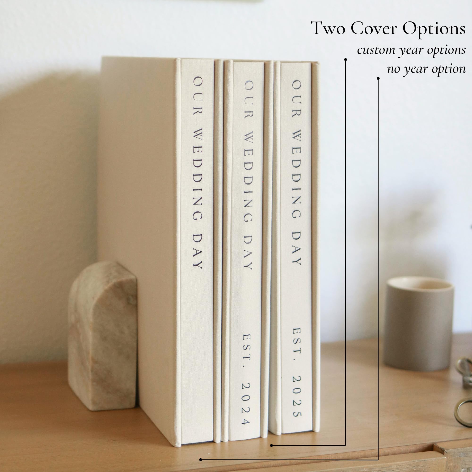 PERSONALIZED YEARS – Add a special touch with a custom year. Either EST. 2025 or opt for a timeless, no-year design. Displayed on the cover and spine, our wedding photo albums make a beautiful keepsake and elegant coffee table book.