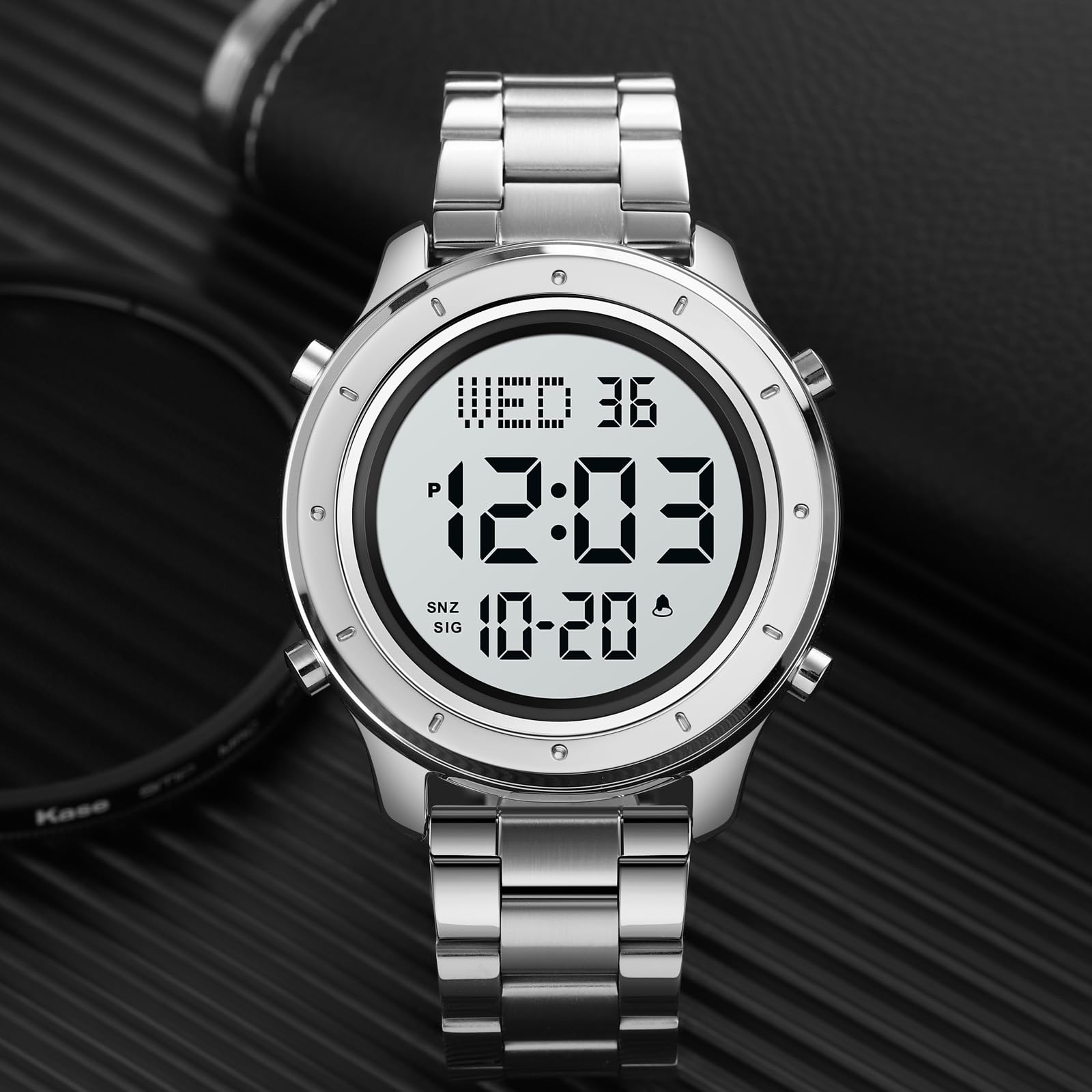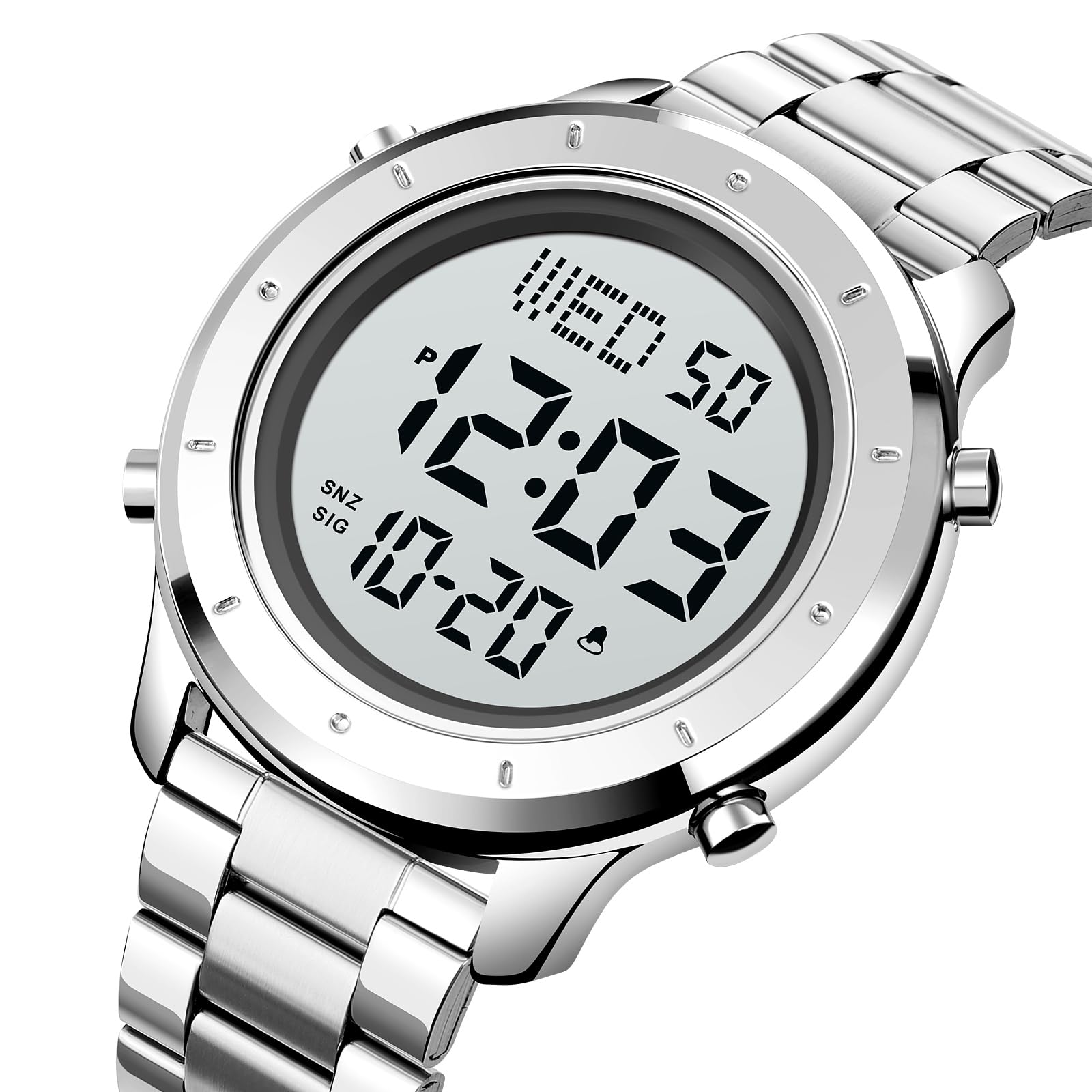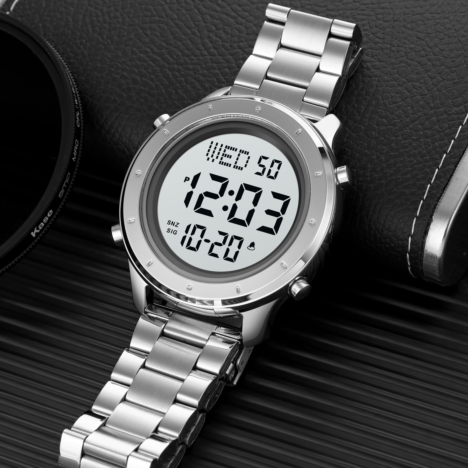 【Nice Large Digits】This ZOLOHONI stainless steel digital watch is very masculine and keeps excellent time. It is very easy to see the numbers indoors and specially outdoors, even at night, light illuminates well. VERY LARGE digital face and big numbers readout is convenient for reading.