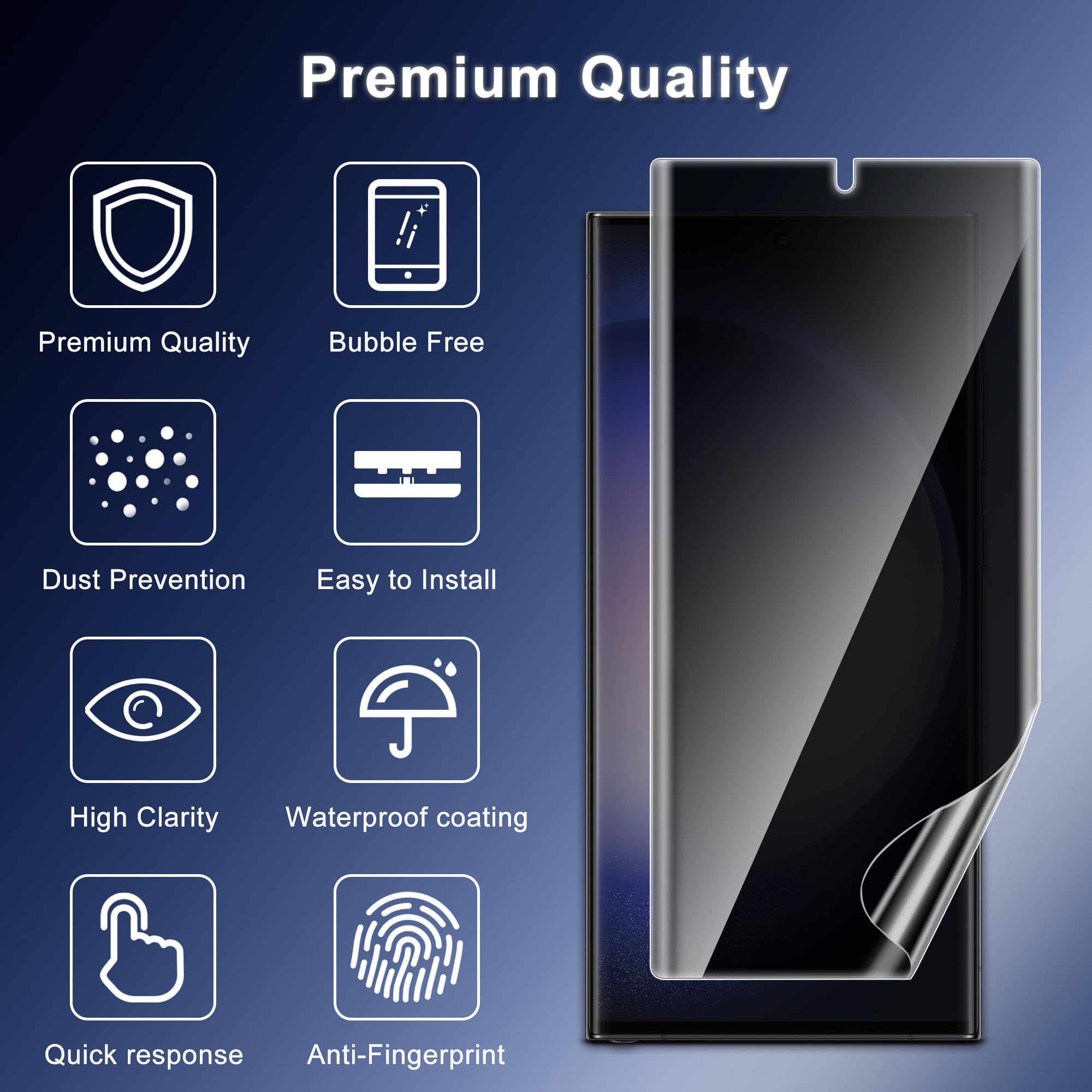 [Scratch Resistance]: This Galaxy S23 Ultra anti scratch privacy soft film preserves the screen’s original color, while effectively resisting daily scratches from keys or coins