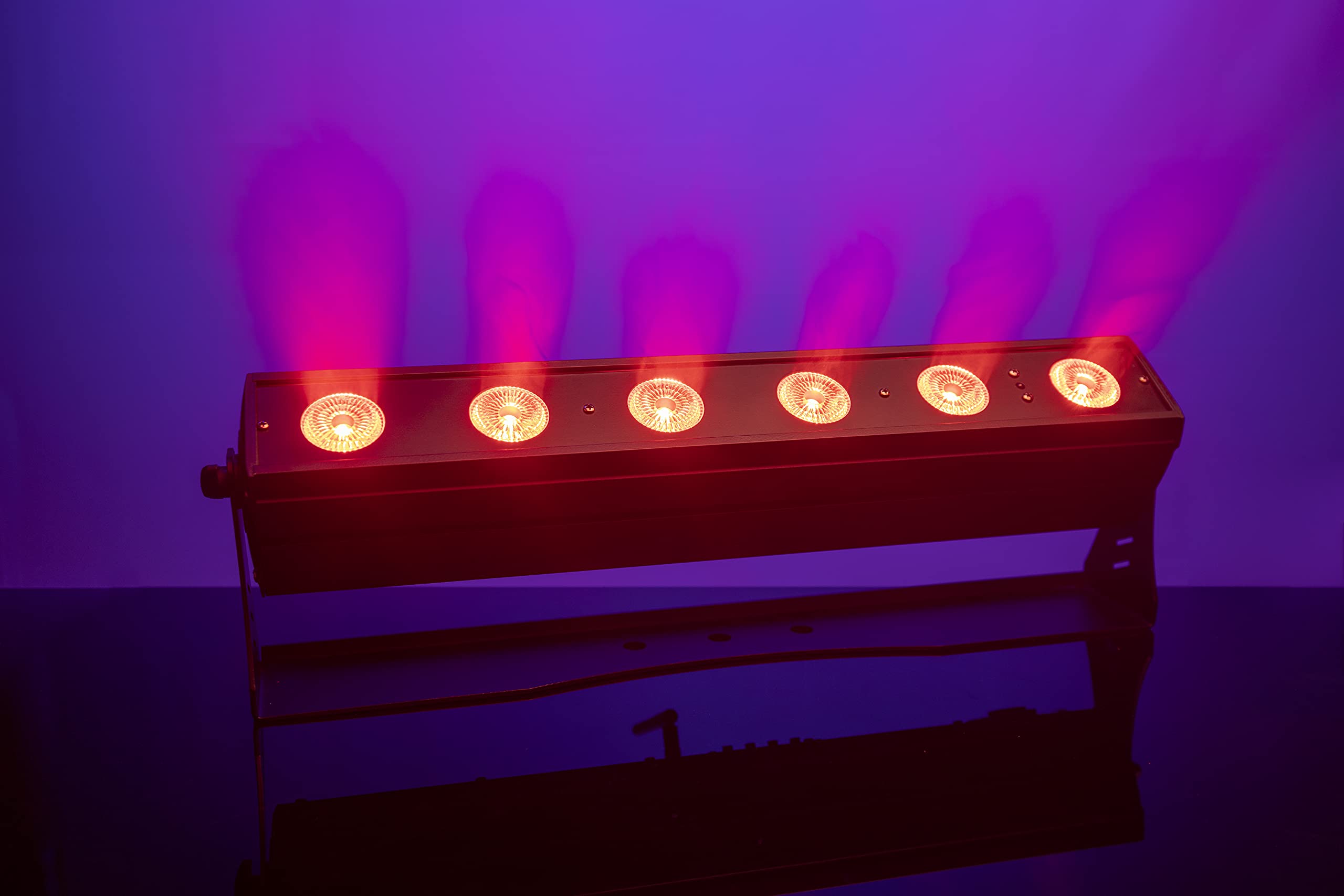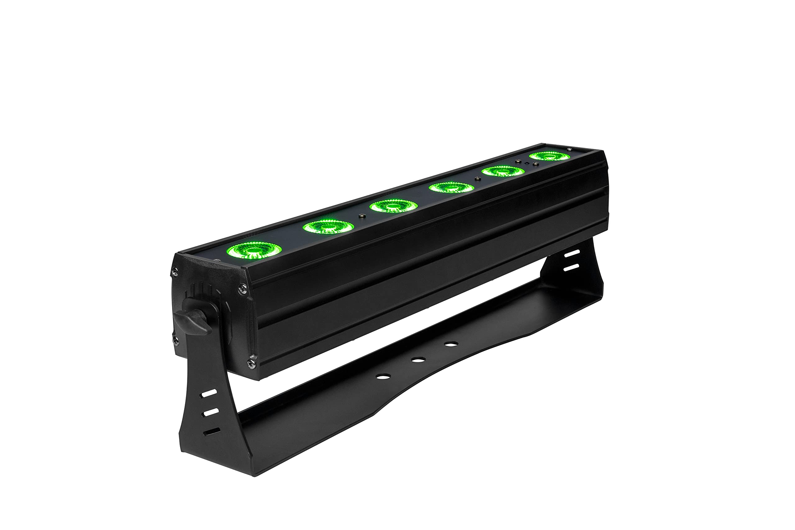 Wireless LED bar with rechargeable battery and 2.4GHz transceiver designed to help you effortlessly illuminate your events without the need for wires and cables.